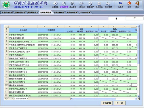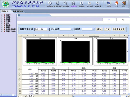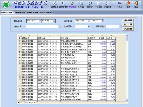 3)短信服务 短信服务有:数据传送,可以把企业的数据发送到指定的手机;短信报警(数据报警,断线报警,开关设备报警,监测仪器报警);批量配置企业的报警数据;自写短信,自定义短信的内容和发送对象。 4)查询统计 提供多种条件查询方式和查询结果分类、分项排序、统计最大值、最小值、平均值、汇总值等分析处理功能。提供统计各类监测数据功能,如流量统计;COD、氨氮浓度分析;COD、氨氮排放总量统计;烟气流量统计;烟气、烟尘、CO、SO2、NOx浓度分析;烟气、烟尘、CO、SO2、NOx排放总量统计等。提供查询结果打印功能 5)分析报表 对于企业的排放汇总数据按指定的时间段进行列表和图形方式分析,并可实现与收费管理系统的结合。 列表分析以表格的方式给出上述数据,图形方式通过曲线、柱状和饼状等图形直观的显示。