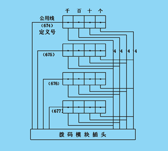 为正确确定X和Y值,堆垛机在运动过程中,采用无接触光电检测方式,对X和Y值不断检测, 一旦检测到X、Y值和PLC机内部设定值相同,说明 X和Y值确定了。Z值只有两种状态,不是右行就是左行,所以用一般开关就能设定Z值。X和Y的PLC内部值由拨码盘接口模块(E-01D)通过拨码开关设定。E-01D模块专为操作者外部设置PLC机内部的目标值,每块E-01D模块可同时输入四组拨盘开关,每组为四位标准BCD码。四组拨盘开关设置对应的计数器或定时器分配号分别为674、675、676、677,E-01D模块拨码接口使用见图2。本立体库PLC控制系统中,只用两组拨码开关,也就是说,只用674、675两个分配号。它们均工作在计数方式。674号被用来设置X值,675号由图2拨码盘设置Y值。