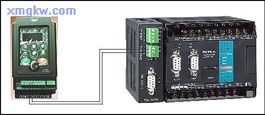 【接线示意图】 本例中,PLC的Port4通讯口( RS-485接口)与变频器连接: