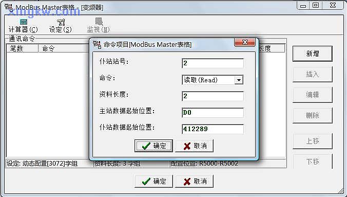 点击“确定”后,进入以下通讯命令表格: