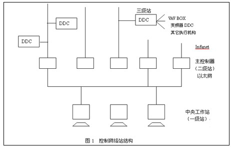 | 安全、高效、舒适、健康、灵活、方便是人们对现代建筑的综合要求,要满足上述要求,则离不工建筑自动化,办公自动化,网络技术,智能通讯,智能防火,智能保安,综合布线等现代技术的支持。变风量空调系统则是集舒适,健康,高效,节能于一身的最新空调技术,不仅为建筑专家津津乐道,亦被广大用户所青睐,使用变风量空调系统的现代大楼与日俱增,如雨后春笋。在给人们带来舒适健康的环境的同时,也使用户获得了巨大的经济利益。 位于北京长安街木樨地桥南的中共中央对外联络部大厦。该大楼装备了性能优秀,功能完善的变风量空调系统。彻底消除风机盘管,分散换热存在的各种弊病。这座总高17层,总面积68000平方米的现代化大楼于04年6月投入运行,效果良好。在该系统中大量使用了变风量末端调节厢VAVBOX,大幅度增加了系统的灵活性和房间的舒适度。据称,此乃国内首例。而使用变频调速器调节风量的通风系统使空调系统的效率大幅度提高。该大楼其使用丹佛斯VLT6000系列变频调速器61台,分别用于各楼层风机的流量调节,性能优异的VLT变频器为控制系统的稳定运行奠定了坚实的基础。尤其是VLT变频器优良的电磁兼容条件,为整个大楼的控制系统,通讯系统,计算机系统及安保监视系统的安全运行提供了必要条件。 在该大楼中,除冷冻站外,所有建筑用电气设备均由中央控制站按日程表排列进行控制(一种钟控方式)。全自动运行并允许局部人工干预。其通讯控制系统为二级网络加DDC控制,由美国Andover产品构成,如图1所示。 ![]() |