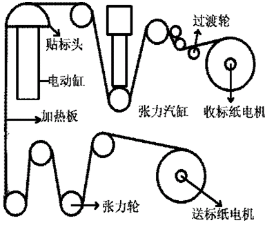 1、设备的加工要求: 要求在一个塑料桶的双面上贴上厂家的标签和里面所装的物品的参数。首先人工把一个生产好的塑料桶放到传送带上,传送带是由一个普通的电机驱动,传送带上有一个两侧可以调整的导轨槽,塑料桶就放在导轨槽上运行。在传送带的两侧各有一个靠液化气进行加热的装置,在塑料桶过来以后对其A、B两侧进行加热,传送带把桶往前运送,当一个光电传感器检测上以后,传送给控制器,由控制器发送一个命令给传送带上部的扶稳冲气装置,这个装置带着一个气管落到塑料桶的桶口上,并且往桶里面冲气,使桶形成一个外凸的圆弧形状。在这个过程中,传送带一直运行,上面的扶稳冲气装置通过一个同步带由一个电机驱动,这个电机的运动由控制器控制,这里要求这个电机从加速度到恒速到减速度停止时,这个时候的的运行速度必须和传送带的运行速度严格要求一致,否则这个桶就会偏到或者在机械装置上刮蹭了。在这个动作的同时,需要开始贴标,这是有三个电机和机械装置一起组合完成,其中的一个电机负责送标,另外一个电机否则收标,还有一个电机驱动贴标头负责把标贴到塑料桶上,标在贴之前,必须进行加热才能往塑料桶上贴住,这个贴标的速度也必须严格要求和传送带的速度一致,否则会造成贴的标变形。