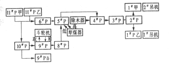 1 概述 目前安庆石化热电厂发电所需的燃料--煤主要由铁路和水路两条线供应。其输煤系统的铁路部分已采用PLC控制,系统设有自动和手动操作方式。而水路部分仍采用常规的继电器逻辑控制,只能通过操作台按钮进行操作。此设备陈旧,继电器数量多,动作频繁,触点易损坏故障率高,并且只能采用现场手动控制方式,控制室与现场之间需电话联系,整个系统分段启停,自动化程度低,不利于事故处理,严重影响着生产的正常运行。 为实现输煤系统的安全、稳定运行,对电厂输煤控制系统的水路部分进行了改造,以工控机为人机接口,采用PLC程序控制系统,取消原有的操作台按钮操作、继电器联锁及简易模拟盘显示的控制方式,整个操作过程绘制成动态流程图画面,通过工控机进行监视与 操作。 2 系统结构 2.1 控制范围 控制范围为自江边煤运码头经皮带机运送至煤场或煤仓层的整个工作过程的设备。控制系统的改造包括煤码头装卸监控联锁系统(见图1)和厂内输煤联锁系统(见图示)两部分,联锁关系实际上是逆煤流方向产生的,即只有后者启动并进入正常运行状态,前者才能启动。厂内输煤系统中的皮带机为双带,分别形成了甲、乙两路两种单系统独立运行方式和两种独立交叉运行方式。