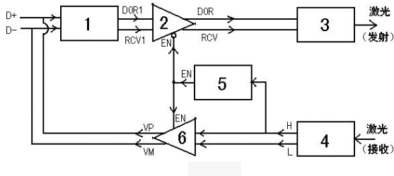 图1将USB信号(D+、D—)转换为激光的框图