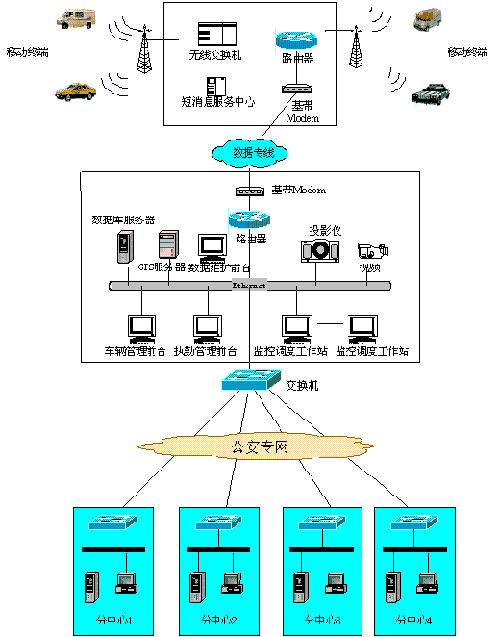 | 中国普天从上世纪90年代中期开始从事GPS、GIS等领域的产品开发和系统研制。在城市交通管理应用中,中国普天的所属企业--杭州东信亿泰计算机信息技术有限公司,具备基于GSM移动通信网的大型GPS综合服务系统的设计、开发和施工能力。自从1998年以来,在GPS领域成功地实施了多个案例,如:义乌市公安局GPS警用车辆调度系统;甘肃省邮政运输局GPS车辆调度监控系统;上海南青科技公司GPS车辆、船舶调度监控系统;吉林省延吉市移动公司GPS移动目标综合服务系统;辽宁省移动公司GPS综合服务系统;香港食品环境卫生署车队调度管理系统;台州地区出租车GPS调度监控系统等。 以下是在公安交通管理领域(110/122/119)中应用的拓扑结构图: ![]() GPS警用车辆调度系统拓扑结构图 系统可以分成GPS智能车载终端、通信系统、移动目标信息服务中心和GPS调度监控分中心等部分。 车载智能终端由GPS接收机,智能控制电路,供电电路,通信机(用GSM模块)等组成,用以实现对GPS信息、报警信号、故障信息、车辆状态和管理信息等数据的采集。 通信系统是通过数据通信网连接SMSC,把车载智能终端采集到的经纬度、时间等GPS信息,以及报警信号、车辆状态和管理信息等数据上传到指挥调度监控中心;并将调度监控中心发出的各种调度控制命令,通过移动目标信息服务中心,传给车载智能终端,即为调度监控中心和车载终端之间提供透明的通信链路。通信系统还通过语音通信平台与PSTN公网、GPRS移动网连接,实现用户约车受理、车辆调度、录音和监听车内警情等功能。 移动目标信息服务中心(总控中心)是整个系统的核心,其应用软件由调度监控前台、业务前台、管理前台、地图编辑前台、守护服务、语音服务、消息服务组成。 GPS调度监控分中心的应用软件由调度监控前台、业务前台、管理前台、地图编辑前台、守护服务、语音服务组成。 |