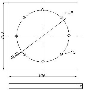 | 格式:G34 X- Y-I- J- K-;(多打一次孔) X、Y:表示X、Y圆周孔到工件原点之距离(绝对坐标) I: 半径 J: 最初孔角度,逆时针为正值 K:孔数 ![]() O0001 G17 G40 G80 N001 G00 G91 G30 X0 Y0 Z0 T1; M06; G00 G90 G54 X100. Y0.; G43 H01 Z10.M03 S800; G99 G81 Z-25.R5.F200; G34 X0. Y0.I100.J0. K8; G00 G80 Z100.; M30; |
