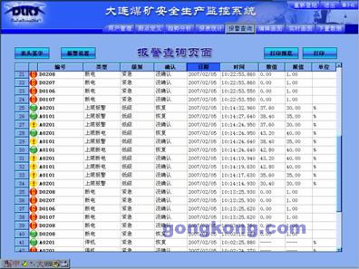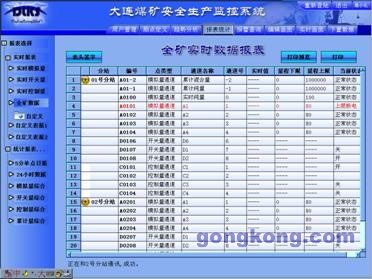 | 近年来,煤矿生产的各种事故接连不断的被各个媒体曝光,这也直接的反映了当前煤矿生产存在着许多的安全问题。因为煤矿安全生产关系到人民群众的生命财产安全,关系改革发展和社会稳定的大局,所以搞好煤矿安全生产工作,能切实保障人民群众的生命财产安全,也体现了最广大人民群众的根本利益。 随着监控组态软件在各行各业的广泛应用,许多煤矿安全生产研究院、设计院和其他从事煤矿安全生产的人员为了提高工程开发的效率,都希望能够直接使用组态软件来进行煤矿安全生产的管理。但是由于煤炭行业存在着特殊性,比如可以动态的增删分站、在瓦斯浓度等超限时直接进行控制等,也给监控组态软件提出了新的要求。 这些新的要求包括: ·软件可以在运行时动态的增加或删除位号。只有软件在运行时可以动态的增删位号,才能够满足煤炭生产中各个采集量的动态变化。 ·软件可以在运行时动态的更改驱动连接。只有这样,才能随着需求的变化而改变采集数据的命令。 ·软件可以在运行时动态的增加画面,绘制各种图元,进行各种动画连接。也只有这样才能把下面设备的更动在软件中以图形化的方式表现出来。 ·在某些量(比如瓦斯浓度)超限后不仅能够进行报警,而且还可以进行断电控制、联动控制和异地控制等控制工作。 为了满足广大煤炭安全生产工作者的需求,紫金桥公司率先扩充了监控组态软件的功能,已经完全能够满足上面的几点要求。下面就以一个应用示例来介绍一下紫金桥软件在煤矿安全生产方面的应用。 本系统由下面几部分组成: ·现场设备 各种传感器、控制阀、开关等一次仪表,由分站进行控制和管理。它们的数据汇总到分站,对它们的控制命令由分站来下达。 ·分站 控制站,由单片机或PLC来完成控制功能,根据功能的差异,又分为主分站和次分站两种。它能够完成从下面一次仪表中采集数据,并根据事先设置的限值来进行报警和断电的控制,是主要的控制机构之一。但是它只能分析控制当前分站下的所有的一次仪表的数据,无法对所有的仪表进行综合分析,也无法完成异地断电功能。 ·服务器 计算机服务器,上面运行紫金桥监控组态软件,和下面的各个分站组成网络。紫金桥软件通过网络从下面的分站采集数据,从而能够完成数据的集中处理,也可以对所有的数据进行综合的分析。紫金桥软件把需要进行的控制命令通过网络发送到下面的各个分站,再由各分站去进一步的控制一次仪表。 ![]() 在紫金桥软件运行的时候会完成以下的工作: ·分站的初始化 由于各个分站没有可以配置的界面,所以分站的配置工作由服务器来完成。在系统运行的时候,可以在紫金桥软件中添加、删除或更改分站。同时也可以修改各个分站的配置,比如各个传感器的类型、量程、限值等等。在更改了分站的配置之后,紫金桥软件就会通过网络向相应的分站发送初始化命令,初始化分站的各个设置量。 ·周期采集各分站的数据 在对分站进行初始化之后,紫金桥软件就会周期性的采集各个分站的数据。这些数据包括各个传感器的模拟量和开关量,各控制状态。另外还有各个分站的中间控制状态,以便服务器和分站进行控制同步,这样当切换控制方式时,才能正确的平滑的切换。 ·对现场设备的手动控制 在系统运行的时候,操作工可以通过紫金桥软件的监控界面把某些控制阀或传感器设置为手动控制状态,然后向现场设备发送手动控制命令。控制命令先通过网络传送到各个分站,再由各个分站对一次仪表进行具体的控制。 ·程序控制 程序控制可以完成和分站的主要控制逻辑相同的控制功能。当系统运行时在紫金桥界面上指定某些传感器处于程序控制状态时,服务器会通知相应的分站,分站就会切换相应的控制状态。此时,对于处于程序控制下的各个传感器,分站不再进行任何逻辑控制,对该传感器的控制命令全部由紫金桥软件来通过网络下达。程序控制是一种备用控制,在下面的分站的控制逻辑出现问题的时候,可以切换到程序控制来代替分站进行控制。当问题被解决之后,再次把控制权转交给相应的分站。通常情况下,在下面分站控制正常时,应该由下面分站而不是紫金桥软件来行使断电控制的逻辑。因为服务器的控制需要依赖网络的可靠性,同时控制也会有网络传输的延时。 ·异地控制 因为各个分站无法根据其他分站的状态而进行异地控制,所以异地控制部分必须由紫金桥软件来完成。所谓异地控制,就是根据一个分站的某些量的状态来控制另外的一些分站的某些控制器。比如当检测到一个分站的瓦斯传感器的数据超限之后,不仅需要立刻打开本分站的一些设备增大通风,还要把相邻的分站的设备打开来协助降低瓦斯浓度。 ·报警提示 当紫金桥软件发现从某一个分站采集的数据超出设定的限值之后,就会产生相应的报警,并有报警音提示。以便及时的提醒操作人员异常的发生。紫金桥还提供了历史报警的检索功能,可以查询任意一天的报警记录。 ·数据的汇总、显示和查询 各分站的数据汇集到服务器之后,紫金桥软件可以通过图形的方式、动画的方式来显示各个分站的传感器的状态。也可以通过报表的形式把各个分站的数据集中显示和分析。同时从分站采集到的数据还可以进行保存历史,这样就可以通过历史报表或历史趋势来对数据