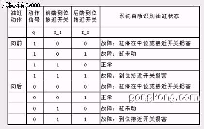 管理层 系统的管理包括车间主任办公室和维修办公室的计算机,通过工业以太网H1信息交换中心连接,使管理层可以实时地从信息交换中心获得目前分析结果,并对此分类归档,形成各种报表。(参见附图) 焊机群控装置 设置一台高灵敏的电压监测仪, 实时监测车间电焊机工作时供电电压的变化,并把结果送入信息交换中心,通过S5-155U的中断程序处理焊机群控信息,经过Prifibus-DP方式,把控制信号高速地传送到生产线上 的PLC,使相应焊机的通电动作得以控制。 系统配置的软件 Coros LSB/Win是系统主要的软件,主要运行在管理层和现场工程师站的计算机上,是系统主要开发平台。COM5431 和COM143系统软件是为了管理现场工业总线 Profibus 和工业以太网 H1。 三. 系统的主要目的 采集全车间六条生产线上的设备运行状态信息 由于 Profibus 网连接着现场PLC,系统可以实时地监测并分辨当前各生产设备所处的正常运行、停机、故障等各种状态,并在相应工控机的相应画面上,通过以不同的符号、图形和颜色变化等形式显示出来。 实时分析发生在各生产线上设备的故障状态及具体部位 由于 Profibus 网络采集各生产设备上的信息,汇总到主 PLC S5-155U上集中进行分析综合,系统可以判断出故障类型和发生故障的所在生产线、工位、部位等位置信息,随后把判断结果送到相应工机显示出来,以提示维修人员。 进行有关故障信息的分析与统计 系统的上位管理机和工控机在工业组态软件 CorosLSB/Win 操作平台下,可对从主 PLC 送来的故障信息,进行分类归档处理,同时在设备维修手册数据库中进行检索,找出故障发生的位置,故障发生的原因及排除故障的主要方法。然后该软件把故障发生的时间、位置、原因及排除的情况记录到设备档案数据库中,并形成各种报表。 对全车间由 PLC 控制的焊接变压器的通电进行群控 利用 Profibus DP的快速 I/O的特性,对全车间电焊机供电电压进行监测,按照电焊机群控原理,对由 PLC 控制的电焊机进行排队通电控制。 四. 系统工作基本原理 自动故障诊断一般方法 焊接车间设备绝大部分是通过油缸和气缸来完成工件的装夹、上料、下料和输送等动作。初步统计该车间分布在各生产线上共 4 千个大大小小的油缸和气缸,而设备故障主要发生油缸和气缸的部件上,表现为这些缸不到位。下面分析一个油缸动作情况,得出自动故障诊断一般方法。设一个油缸向前运动 Q=1,油缸经过一定的运动时间到达前端,则前端接近开关 得电 I_1=1,后端接近开关失电 I_2=0。我们系统中为这个油缸设置一个计时器T。当油缸动作 Q 信号发出,该计时器开始计时,在设定的该油缸运动时间T_set范围内,相应到位接近开关得电,即系统认为该油缸工作正常。如果在该油缸运动时间T_set范围内,相应到位接近开关未得电,则系统认为该油缸发生故障。系统自动分析的结果列表如下: