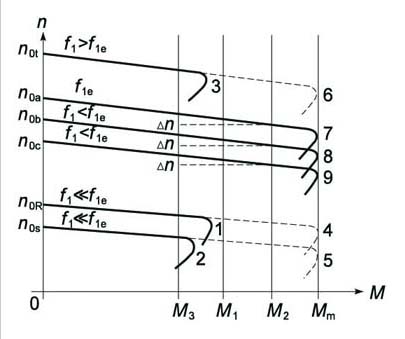 | 摘要: 变频调速技术在水泥行业中的应用越来越普及,因此在电机学原理的基础上,并结合多年来的实践应用,对变频调速技术加以认真的分析和总结是有意义的。 1 变频调速后异步电动机机械特性 变频调速原理基于n=(60f1/p)(1-s),即改变定子供电频率f1,可改变电机的同步转速n。为保持在调速时电机的最大转矩Mm不变,要求定子供电电压作相应调节,以维持磁通恒定。根据定子电压U1和定子供电频率f1的不同比例关系,有不同的变频调速方式。图1为变频调速时异步电机机械特性,其中Δn表示负载变化时的转速偏差。 1)保持U1/f1=常数的比例控制方式。该方式下,只要U1和f1成比例地改变,就可维持恒磁通,从而实现变频调速。但低频时,由于定子阻抗相对定子漏抗不能忽略,最大转矩Mm随频率降低而减少,起动转矩也将减小,图1中的曲线4和5为低频时理想曲线,1和2为实际曲线。 2)保持最大转矩Mm为常数的恒磁通控制方式。该方式下,为使Mm不变,须随f1的降低适当提高U1。 3)保持恒功率的控制方式。在f1>f1e(定子工频)时,若仍维持U1/f1=常数,势必使U1超过定子额定电压U1e,这是不允许的。因此在f1>f1e时,定子电压不再升高,而保持U1=U1e,此时可近似视为恒功率调速。如图1曲线6为f1>f1e时理想曲线,3为实际曲线。 ![]() 图1 异步电动机变频调速时机械特性 2 对几个指标的探讨 2.1 关于转矩的问题 1)当在额定频率f1e以下时,如图1中的机械特性曲线7、8、9中的互相“平行”部分调速范围很宽,可以适应不同大小的负载。 2)当所调频率过小,如图1中f1≤f1e时的机械特性曲线1和2。此时电动机的负载能力实际变小了,只能满足小负载转矩如M3等。而不能满足稍大一些的负载转矩如M1、M2等,这类需要设备低速乃至超低速运行的情况,在水泥行业中经常遇到,如包装机包装完毕需清仓卸灰时,需低速运行;又如回转窑在使用变频器调速时若省略慢转电机,则在翻窑等特殊情况下,需超低速运行,若此时由于负载过大电机满足不了要求,则应需对变频器转矩提升功能进行设定,以满足生产对负载的需求。 3)当所调频率f1高于f1e时,电机实际的机械特性变差,负载能力降低了,如图1中曲线6中实曲线部分3。此时,变频器由恒转矩工作状态变为恒功率工作状态,如图2所示。 ![]() 图2 恒转矩和恒功率调速时机械特性 这时随着频率(转速)的升高,转矩M逐渐下降。但在实际应用中将转速调到额定频率以上的情况很少遇到,有时也不允许。 2.2 关于速度问题 即使变频器输出的是同一频率,由于负载转矩的变化(不同)使得电机设备的实际转速存在偏差,如图1中M2与M1和M3之间存在着转速偏差Δn,而且负载变化越大,Δn越大,水泥行业中也存在这种情况,如我厂旋转式包装机在用变频调速时,是按速度定产量,如变频器输出23Hz时对应电机转速约500r/min,相应产量是80t/h,但如果旋转料仓的料量不同即负载不同,则实际转速是会有偏差的,以此定产的80t/h也只能是估算。若要求严格,可将电机由开环控制改为滑差补偿控制或进行速度反馈等闭环控制。使得即使负载变化,电动机仍然保持速度指令下对应的转速。以上控制则需要进行控制功能设定或加选件(印刷电路板)。当需要设定频率与输出转速绝对一一对应时则应将电机改为同步电机,电机实际速度即为n=60f/p,不必设置速度反馈控制,只要精确地控制电源的频率就能精确地控制转速。 2.3 关于节能问题 由电机功率P=转矩M×转速n,在负载转矩变化不大时,即M趋于恒定时P正比于n,如水泥厂中风机类负载,在低速起动时可节能,又如水泥窑及选粉机等的主电机在工频50Hz以下调速时均可节能,但前提是须满足生产对负载转矩的需要。 3 变频器诸多通用功能应用说明 3.1 对几个重要参数设置的说明 我厂大量使用的日本东洋电机的VF61变频器和ABB公司的SAMIGS变频器都具有多种参数设定功能。经过多年的摸索总结,对几个重要参数的设置说明如下。 3.1.1 关于额定参数的设置 在使用变频器之前,必须将实际电机的铭牌数据如额定电流、额定电压、额定频率等输入到变频器内,即需重新设定。因为变频器有多种保护功能,以使电机能正常工作在允许的范围之内,起到应有的保护作用。 3.1.2 关于频率设定方式的问题 可由控制盘、端子台、微机联网三种方式设定频率,通常我们只用控制盘和端子台两种方式。但两种方式也要有所选择,如VF61变频器用控制盘时选择DIR模式,用端子台操作时选择REM模式,否则在DIR模式下端子台不能操作,在REM模式下控制盘不能操作。当用控制盘操作时,在控制盘上设定一个频率,电机就以一个固定频率旋转,若想改变转速需再重新设定一个频率。 3.1.3 关于频率设定的问题 1)对最高频率的设定:因为在用外部模拟信号如0~10V电压设定工作频率时,10V电压所对应的频率就是最高频率,可以达到400Hz,所以对最高频率必须重新设定,否则将产生严重故障。通常对最高频率的初始值设定为工频50Hz,即在外部最大给定10V时,变频器最大只能输出50Hz,保证电机在工频以下安全运行。 2)对频率上下限的设定:对转速(频率)有限定要求时,需重新设定。如我厂4号包装机主电机采用VF61变频调速已实现了以速度定产量,即在变频器输出23Hz(相当于500r/min)时包装水泥袋产量为80t/h,如果高于这个速度对主机设备不利。经与车间研究限定速度为23Hz(500r/min),即在VF61变频器扩展设定项目1中的17号代码频率限界(上