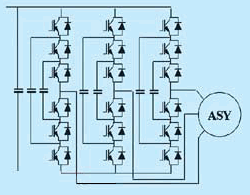 | 多电平高压变频器是我们国家近年来在电力电子领域的一个研究重点,它作为一种应用于高压大功率变换场合的新型变频装置,将可以很有效的应用在那些高压风机、水泵、压缩机的节能改造中,同时也可以大量的采用在工艺和设备要求的电压等级较高和容量较大的交流调速的环境中。其主回路的拓扑结构是本文探讨与剖析的主题,本文以欧洲的阿尔斯通电气公司在我国的宝新不锈钢厂和太钢应用在轧机主传动上的交流、高压、多电平的变频器为例进行了剖析。 1、引言 交流电机变频调速已经是当前各行各业都普遍关注的重大项目。人们期待用高效率、高可靠而又经济可接受的变频技术来调节交流电机的转速已达上百年的历史了。在20世纪60年代后半期,电力半导体器件及其在变频器应用中的进步,成就了发达国家在70年代初的第一次世界能源危机期间用变频调速实现高效节能事业的大发展。对于交流电动机,改变频率即能调速。随着可控硅、GTO、IGCT和IGBT等电力电子元器件的开发,相应的控制技术的发展和这些电力电子器件的高度集成化,使得变频器在工业中得到了更广泛的应用。受限于电力电子元器件的开发与应用,在过去的十几年中还基本上是以低压变频调速装置为主,即:电压为380V~690V,工业中大量应用的大容量的高电压的交流电动机还仅仅采用其他的调速方式或不调速的形式运行在工业系统当中,从而消耗了大量的能源。 根据目前各主要变频器的制造厂家的不同研制和开发,现有的高压变频器的组成方式也不尽相同。根据电压的不同,可分为直接高压型和通过升压变压器的高-低-高型(实际为低压变频器);根据中间的耦合形式,分为交-交型的变频器和交-直-交型的变频器;而根据中间直流偶合环节组合的不同又分为电压源型的变频器和电流源型的变频器。我们知道低电压变频器的拓扑结构都为统一形式的二电平结构方式。而由于电力电子元器件的耐压受到限制,不同的电力电子元器件的开关频率的不同,使得近年来开发出来的高电压、大容量的变频器的拓扑结构形式也是各有千秋。但考虑到整个系统的简单、可靠和经济,目前应用的高压变频器的拓扑结构还主要集中在三电平和四电平的形式上。 近两年来我国在工业新上项目中先后从欧洲的阿尔斯通电气公司引进了几套四电平电压源拓扑结构形式的高压变频器,它们先后应用在我国的太原钢铁公司、宝新不锈钢厂(隶属于宝钢)、青岛钢铁有限公司和天津无缝钢铁总公司。其传动系统采用的是当今传动控制中最为先进的ALSTOM公司的多电平拓扑结构、IGBT元器件的交流高压变频调速装置。此系统的最大特点是,系统为交流高压变频调速装置;主回路采用的是四电平IGBT结构;3台4MW的交流同步主电机共用一条公用直流母线,达到了系统的高性能工艺调速要求,同时系统方案又经济、可靠、节能和最优化配置。整流则采用的是当今最为先进的称之为清洁型能源变流器[1]。此类变频器即可应用在风机、泵、压缩机类的主转动上,也可应用在 工艺性能要求高的轧机生产上和大型船舶驱动上。 2、系统的结构组成 近年来随着电力电子元器件和控制系统结构的发展,GTO、IGCT和IGBT的开发以及变频技术结构形式上的发展,使得高压、大容量变频器得以迅速应用在工业系统当中。变频传动装置首先经历的是在原有的二电平控制结构基础上并串联上多个元器件,其二电平输出波形见图1(a)。元器件的并联连接,输出电压要满足元器件承受电压的要求,这种连接方式所引起的问题与复杂的均流装置相绞合在一起,电路的复杂程度常常易造成元器件的损坏;对于串联元器件的连接形式,输出电流同样要满足元器件的承受能力要求,要确保其分布在元器件上的电压在任何情况下都要均衡,故也容易常常发生系统的故障。因此从系统的可靠性的角度来说,它们都很难保证系统的可靠运行,同时输出波形也很差。 近年来在电力电子元器件发展的同时,变频器的拓扑结构也在随之得到开发,伴随着电力电子元器件的耐压和承受电流的限制,变频器的拓扑结构相继出现了三电平、四电平和多电平结构的形式。对于三电平、四电平和多电平结构的变频器,它提供给电动机非常小的谐波电流且电流波形也更接近交流电动机要求的正弦波电流波形,如图1所示。通过这种拓扑结构我们可知随着多电平的增加,其电压幅值在相应的降低,这使功率元器件所承受的电压降低,更加有利于减少装置产生的dv/dt。当前的大容量、高压变频器,既要保证大功率的输出,又要确保系统的可靠运行,还要保证输出波形更趋近于正弦波。目前在高压、大容量的变频器中常常采用的多电平的结构和输出波形如图1所示。三电平的结构方案在近年来的发展中既使用有GTO(以及最近的IGCT中)元器件,也采用在IGBT的方案中(目前几个著名的大公司如西门子,ABB和阿尔斯通都有此类产品)。但它的不足是元器件的导通或阻断是由箝位二极管来加以保证的,箝位二极管的耐压要求较高,数量庞大;开关器件的导通负荷不一致;在变流器进行有功功率传送时,直流侧各电容的冲放电时间各不相同,容易造成电容电压的不平衡,增加了系统动态控制的难度;同时这种结构的扩展能力也很有限。 随着现代拓扑技术的发展,多电平的变频技术结构方案得以在工业系统中应用。图2就是