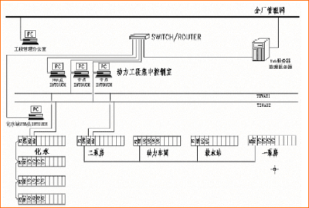 | 摘要:本文介绍的是InTouch在某醋酸纤维有限公司《动力工段自控系统改造》项目中的应用。 关键词:intouch 1. 系统简介 《动力工段自控系统改造》项目是对南纤公司原有动力工段的自控系统进行改造和优化。目标是充分利用原有软硬件资源,用最少的投入获得高效、安全的系统性能。 原动力工段包括:化水车间、冷冻空压车间(简称动力车间)、软水站及一二泵房车间,各自拥有自己的控制室。改造前,化水车间已采用了一套SIEMENS TI545 PLC 和两台全点的INTOUCH 操作站实现监控,泵房车间也已采用了一套SIEMENS TI545 PLC 和两台256 点的INTOUCH 操作站实现监控,动力车间除5 台压缩空气干燥器采用GE 90-30PLC 控制外其余设备的监控均用盘装仪表实现。原动力工段系统结构如下图所示。 改造前的系统结构 系统改造后,泵房车间和动力车间由原泵房车间的SIEMENS TI545 PLC 控制(需增加一些卡件),化水车间在原系统基础上增加一些功能。将原有的两台全点INTOUCH 和一台256 点INTOUCH 移入新设的集中控制室,实现三个车间的集中监控,在化水车间设一台256 点INTOUCH 操作站,供现场巡回检查时使用。 同时系统通过一台新设的数据及Web 服务器与公司管理网连接,公司和工段管理者可通过公司区域网获取生产过程的数据和报表。 改造后的系统结构 2. 系统功能及特点 2.1冗余的总线及操作站 系统包含2 台全点的INTOUCH(SERVER1、SERVER2)和2 台256 点的INTOUCH(CLIENT1、CLIENT2),SERVER1、SERVER2 分别通过各自的TIWAY 卡与化水、泵房的PLC 构成两条冗余的TIWAY 总线。CLIENT1、CLIENT2 则通过远程变量访问某台全点INTOUCH 上的数据从而实现对现场的监控。通常CLIENT1、CLIENT2只与SERVER1、SERVE2 中的一台通讯,当发生通讯故障时会自动尝试与另一台SERVER 连接。INTOUCH 中的“通讯状态”画面显示了各工作站、PLC 及总线的当前状态。 ![]() 图中红线表示操作站在线,黑色表示离线。在CLIENT1、CLIENT2 的“通讯状态”画面中,工程师可以手动切换CLIENT 与SERVER 的连接。 2.2“瘦”操作站模式 256 点的CLIENT 通过远程变量访问全点的SERVER 从而访问PLC,这样CLIENT的变量配置不超过256点。同时系统运用了“分布式报警”和“分布式历史趋势”等功能,所有的报警记录及历史趋势都存储在全点的SERVER上,CLIENT上显示的报警和历史趋势是从SERVER上获得的。可以说,SERVER充当了INTOUCH服务器而CLIENT是一个INTOUCH 客户端,只需较低的配置即可。当切换SERVER时,“分布式报警”和“分布式历史趋势”也跟着自动切换。 1.“分布式报警”的设置 在INTOUCH 组态中需用“分布式报警”控件,在控件的报警查询栏中输入“\\SERVER1\INTOUCH!DONGLI”,SERVER1 为缺省连接的计算机名,DONGLI 表示INTOUCH 中的DONGLI 报警组(报警组包括DONGLI、HS)。在SERVER 的计算机属性需选中“本机将提供报警”;而在CLIENT 的计算机属性中需选中“本机将显示报警”。运行时CLIENT 将通过函数切换与SERVER 的连接。 为了统一报警设置,我们将报警做在PLC 的报警模块中通过对PLC 变量“AHA(报警上限)、AHHA(报警上上限)、ALA(报警下限)、ALLA(报警下下限)、APV(报警过程值)、AVF(报警状态字)”的读写来判断和设置报警。有报警发生时,只有SERVER 会将报警信息写入报警记录,SERVER2 在写报警信息前先判断SERVER1是否在运行,以免重复写入。 2.“分布式历史趋势”的设置(以SERVER1 为例) 在SERVER 的INTOUCH 组态中需将历史数据的存放路径设为INTOUCH 默认路径。CLIENT 的INTOUCH 组态需在“分布式名称管理器”中的“分布式历史”里添加一项,供应器名称为“SERVER1”,路径为“\\SERVER1\D\NCFC2000S1”(工程路径)即可。在CLIENT 中访问SERVER1 的历史数据需写成“SERVER1.TAGNAME”。SERVER2 的设置与SERVER1 相同。 3.远程变量的引用 在CLIENT 上使用远程变量只需在变量名前加计算机 名即可,无需在标记名字典中新建变量,所以不占点数。(SERVER:TAGNAME) 4.自动切换功能 CLIENT 通过远程变量观察SERVER 上的$Second 变量,若它在在一段时间内无变化则表明与SERVER 的连接出现问题,这时可通过SetAccessName 函数将CLIENT 上的远程变量切换到另一台SERVER 上。 2.3公用的操作窗口 系统中对于具有相同操作接口设备使用了公用的操作窗口,而不是对应每个设备都创建一个操作窗口,这样大大减少了窗口的数量。实现它需要用到间接变量,可以将间接变量看作一个指针,当对某个设备操作时,利用间接变量指向操作变量,这样,对间接变量的赋值就会作用到操作变量上,操作变量的变化也会反应到间接变量上。 以过滤水泵为例,在过滤水处理系统中,点击3#过滤泵,弹出操作窗口,如下图所示: 3#过滤泵的操作变量为“RUN-3#GLB(启动)”、“STOP-3#GLB(停止)”、“RL-3#GLB(反馈)”、“AUTO-3#GLB(自动)”、“REPAIR-3#GLB(检修)”点击过滤泵时执行语句: DL_START.NAME=RUN-3#GLB.NAME; DL_STOP.NAME=STOP-3#GLB.NAME; DL_RL.NAME = RL-3#GLB.NAME; AUTO.NAME = AUTO-3#GLB.NAME; DL_REPAIR.NAME=REPAIR-3#GLB.NAME; “DL_XXX”为间接变量。在操作窗口中只需对间接变量赋值即可。例如在“启动”按钮的动作属性中写到: IF DL_START.Name<>"NULL" AND DL_STOP.Name<>"NULL" THEN DL_START=1; DL_STOP=0; Record=DL_START.Comment; SQLInsert( ConnectionId, "CortrolLog", "CortrolLog" ); //写操作纪录 ELSE IF DL_START.Name = = "NULL" THEN DL_STOP=0; Record=StringLeft( DL_STOP.Comment, StringLe(DL_STOP.Comment )/2 ); SQLInsert( ConnectionId, "CortrolLog", "CortrolLog" ); ELSE DL_START=1; Record=StringLeft( DL_START.Comme