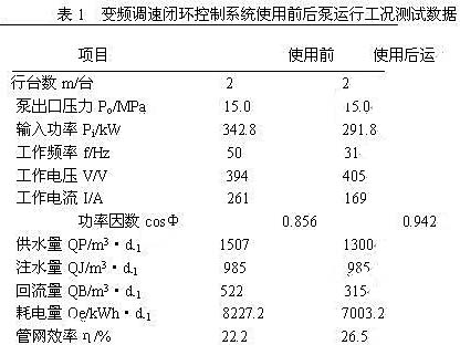 | 一、概述 油田注水站在使用变频调速装置之前,都是用工频启动设备,机泵在恒速下运行。在实际生产中,由于注水系统的不稳定性,使得泵站压力经常发生变化,当压力超过或低于规定值时,只能靠人为的启停泵或打回流(注水泵以一定的压力、排量运行时,为满足注水井计划注水量的要求,在注水泵出口处把一部分水回流到贮水罐)来调节压力,此种调节方法很难达到注水要求,既影响稳压注水又浪费电能。应用变频调速器闭环控制技术,通过改变注水泵电机转速来调节注水泵排量,不仅可减少回流量,实现了稳压注水,还可以提高管网效率,减少电耗,达到了节能的目的。从根本上解决了这一影响注水质量及注水效率的难题。 二、系统设计 由异步电动机转速与频率的关系n=60f/N(1-s)可知,对于已选定好的电机,因极对数N不变,转差率s变化范围有限,所以转速n主要决定于频率f,变频调速就是通过改变定子电源频率来实现电动机调速的。因电机消耗的功率与电机转速的立方成正比,转速改变后相对应的电机功率也就发生变化,达到节电的目的。变频调速闭环控制系统是在配水网处安装压力传感器,压力传感器输出随配水网压力变化的4~20mA的信号,送至变频器,变频器内置有PI调节器,设定好PI调节器的比例值、积分值和设定值,变频器便能按设定的压力在偏差范围内不断调节电机的转速,从而实现注水系统的压力闭环控制。其系统工作框图如图1。 ![]() 变频调速器闭环控制系统工作框图 三、变频调速器容量的选择 变频器的容量选择是非常重要的,因为合理的容量确定的本身就是一种节能降耗措施。根据现有的资料和经验,确定变频器的容量以达到最佳匹配,其主要方法有: a) 电机实际功率确定法 按接近电机实际功率选择变频器容量。 b)公式法 设安全系数为1。05,则变频器的容量Pb为 Pb=1。05PeηecosΦ,kW 式中 Pe——电机的负载,kW ηe——电机效率 c)电机额定电流法 变频器的输出电流大于电机额定电流的10%即可。 四、运行情况及效益分析 长庆石油勘探局第二采油厂注水站为5ZB 37/170型往复注水泵,注水泵的配备功率为185kW,每日开2台泵注水,供水量为1500m3/d左右,计划配注量约1000m3/d左右,回流约500m3/d。改造前,该站两台泵均在工频状态下运行,该站改造后安装了1台变频调速闭环控制系统后,1台泵在50Hz工频下运行,另1台泵在31Hz变频下运行,经过1个多月的试运行后,对改造前后泵的运行工况进行了现场测试对比,测试情况如表1。 ![]() 1. 经济效益可观,从表1可知,当电源频率由50Hz调整到31Hz时,回流量减少了207m3/d,节约电能1224kW•h/d,年创经济效益 26万元,投资回收期为1。15a。 2. 实现闭环系统自动控制后,操作简便,减少了现场阀门的频繁调节,确保了生产平稳,减轻了工人的劳动强度。 3. 由于电机频率下降,大大降低了噪声及振动,改善了现场工作环境,同时避免了“大马拉小车”的现象。 4. 由于设备转速降低,设备工作平稳,磨损减少,延长了设备的使用寿命和检修周期。 5. 用了变频调速系统后,由于注水压力始终保持恒定,一方面保持了地下压力的平衡,取得了良好的驱油效果使产量稳产、高产;另一方面对油井及含油层有一定的保护作用,能够做到文明开采,延长油井寿命。 6. 采用软启动方式,大大减少了因电机启动电流过大对电网的冲击,保证了电网的正常运行。 五、使用注意事项 a) 一旦发生故障报警,,要首先观察变频器键盘上所显示的故障代码并将其记录下来,待排除故障后方可通电运行。 b) 变频器与电机之间不应有减压启动装置和功率因数补偿用的电容器。 c) 变频器在给电机供电时,在轻载或低速运转过程中,有时变频器交流输入电流很不平衡,严重时只有一相有电流,其他相无电流。这并不是异常现象。当负载增加或电机进入高速区时输入电流增加,电流就平稳了。 d) 由于变频器在工作时产生一定的高次谐波,为了防止污染电源,可在电源旁边装设绝缘变压器进行衰减。 e) 采用变频器调速的电机,由于电机电流含有高次谐波成分,损耗增大,温升增高,而且在低转速下运转,冷却效果变坏,会导致温度升高。为解决温度升高可适当增加变频器容量或采取风扇进行强制致冷。 六.结论 1)节能效果显著。电动机采用变频调速,可以使电动机和驱动的传动机械变速运行,对于相同负荷定速运行的耗电量明显降低,速度越低越省电。同样也降低了变电、输电的有功和无功负荷。 2)使用变频调速闭环控制系统,减轻了由于调节阀节流形成的对泵的旋涡冲击,同时也减轻了注水泵的振动和噪声,改善了工作环境,延长设备使用寿命,具有明显的经济效益和社会效益。 |