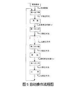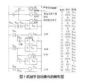 机械手自动操作流程图如图5所示。状态转换图如图6所示。梯形图如图7所示。 |