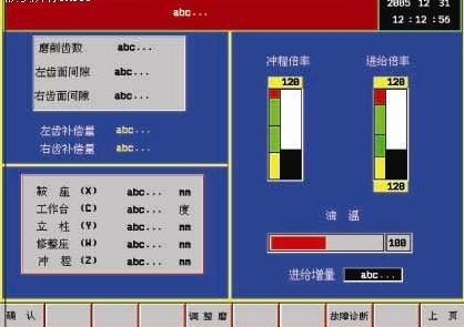 | 1. 引言 我公司于1989 年从德国引进的ZSTZ15磨齿机,系德国NILES公司80年代的产品,其控制系统以PC603及其I/O为核心,驱动系统的展成、分度、立柱、切向进磨均采用直流驱动器和直流伺服电机,滑枕冲程控制为电液伺服驱动。因电气及液压系统老化、PLC系统经常死机机,故障率逐年增高,液压伺服系统因变量泵、伺服缸、溢流阀等元件磨损,系统的内泄和外泄均很严重,常因压力降低而不能工作,尤其是三九和三伏天系统常常出现故障,冲程速度因压力的降低,只能达到 40次/分钟,仅是原来的2/3,机床效率大为下降、机床的加工精度也受到影响。加工的齿轮多数都在10级左右,已不能满足我公司生产发展的需要。 我们采用法国产NUM Axium Power 1050全数字数控系统对其进行了改造,使这台已经工作了近20年的老设备重新焕发了青春。 2. 数控化改造思路 2.1 数控系统 用当代最先进的全数字数控系统之一,法国NUM公司生产的NUM Axium Power 1050G全数字数控 系统及其全数字交流伺服驱动系统改造原来的PC603工控机及其PLC系统及其直流伺服驱动,该系统对于高性能的机床非常理想, NUM Axium Power 1050是一个多处理器的CNC,每2毫秒处理一次的路径产生及跟随,以及0.2毫秒的位置环刷新周期。具有标准的RS232接口,采用10.4寸彩色液晶显示器。 2.2 取消机械挂轮 取消原机床的机械挂轮及左、右齿面进给电机,展成运动和左、右齿面进给改为由NUM数控系统及其全数字交流伺服驱动系统控制X轴和C轴联动,用NUM系统的动态操作功能,通过复杂运算自动生成电子挂轮,取消了低精度的机械挂轮,减少机械传动环节以确保展成运动关系的精确。 2.3 开发友好的人工界面 开发设计齿轮参数界面、砂轮参数界面、修整磨和循环磨界面,通过人机界面可以方便的修改齿轮参数、工艺参数。自动生成冲程长度、冲程速度、展成长度及展成速度等相关参数,简化了加工前各种不同规格齿轮的计算及调整时间,简化了操作,提高了加工效率。 2.4 改造冲程液压伺服系统 利用德国博士伺服阀和力士乐变量泵更新改造冲程液压伺服系统,采用英国NEWALL球栅尺作冲程位置反馈,使ZSTZ15磨齿机升级为全新的数控磨齿机。 2.5 将原立柱移动(Y轴)、砂轮补偿(W轴)改为NUM数控系统及其交流伺服驱动系统控制。 3. 系统硬件配置 3.1 数控系统 MUM Auium POWER 1050 with coprocessor GS 10.4”LCDcolor screen(FS20) Industry QWERTY CNC keyboard(KBD30) Machine panel(MP02) Optical fiber 15m OEM handwheel unit 3.2 数控系统原理框图如下: ![]() 4. 软件设计 4.1 NC 程序设计 利用 NUM 系统独有的动态操作功能,编制程序生成电子挂轮,确保 X 轴和 C 轴的精确运动,满足圆柱渐开线齿轮的齿形需要。 4.2 PLC 程序设计 多任务的PLC程序,提高了PLC程序的编写和可读性,共设计了%TS0循环任务模块、%INI初始化任务模块和%SP1、%SP2、%SP3、% SP4、%SP5、%SP6六个子程序模块。将机床的启动、使能、轴控制、辅助功能、报警信息等编制成不同的模块。程序结构合理、层次清晰。 4.3 人机界面设计 利用MMITOOL软件开发友好的人工界面,设计出主界面、齿轮参数界面、修整磨界面、砂轮界面、自动循环界面、报警界面。 4.3.1 齿轮参数界面 图1为齿轮参数界面,操作者只需按照齿轮加工图纸,在操作台的键盘上,输入有关的数据(如齿轮的齿数、模数、螺旋角、齿宽等)后,就能自动生成展程长度、展程速度、冲程长度、冲程速度等加工参数,不需要再编制零件程序,即可进行齿轮加工,操作简单可靠。 ![]() 图1 参数界面 根据操作者的经验可以对自动生成的各参数进行适当调整,以满足加工的需要。 4.3.2 修整磨界面 修整磨界面即半自动界面,在此界面可以对找正后的齿轮进行试磨削,也可以进行单齿磨削和多齿磨削。 ![]() 图2 修整磨界面 4.3.3自动循环界面 图3为自动循环界面,在自动循环界面可以对磨削量进行设置和调整。显示加工循环圈数、当前加工状态、齿轮参数、各轴的运动状态、当前的磨削量和总磨削量。可控制冲程液压伺服系统的油温。 ![]() 图3 自动循环界面 4.3.4 手动界面 ![]() 图4 手动界面 见图4,在手动界面可对机床的X轴、C轴、Y轴、W轴、Z轴进行单独控制,配备的手轮方便了精确对刀。可以方便地修改冲程长度、展成速度、展成长度值。操作者可根据经验直接输入左右齿面间隙,加快对刀进程。 4.3.5 砂轮修整界面 ![]() 图5 砂轮修整界面 在砂轮修整界面可以显示出砂轮的当前直径,输入每次的修整量和修整次数,还可以较正砂轮的当前直径。 5. 冲程液压伺服系统 6. 结束语 NUM Axium Power 1050全数字数控系统在欧洲和美国以军工和航天工业的大量应用而著称于世,是当代最先进的全数字数控系统之一。它在ZSTZ15磨齿机的数控化改造中得以应用。不但提高了生产效率近一倍,同时提高了机床的加工精度,提高了操作工人的收入,产生了重大的经济效益。开创了利用NUM系统,以取消机械挂轮的模式改造大型磨齿机的先河,在磨齿机改造方面取得了突破。 |