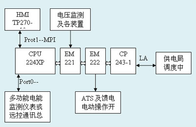 贵阳市南供电局110kV观水变电站是贵阳市南明区的主要供电站,变电站用配电盘运行的稳定可靠性直接影响到向整个区大部分的生产、生活供电,原用的配电盘系统功能简单、自动化程度不高、控制方式落后,对供电局实现无人值守变电站和配网自动化带来很多不变,也不能时刻保证城区电网供电的电源质量。因此,2005年5月对该配电盘进行了设备改造,改造以西门子公司的S7—200PLC做控制中心,TP270做监控操作中心,其它配电设备和监测设备均采用国外知名厂家产品。
