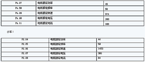c)设定编码器参数P4.00-P4.01, d)根据客户提出的电机加减速时间,计算出S曲线的加速、减速、停机的时间P1.08-P1.13, e)进行电机参数自学习,学习出参数见下表: