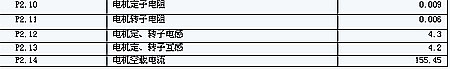 c) 设定编码器参数P4.00-P4.01, d)根据客户提出的电机加减速时间,计算出S曲线的加速、减速、停机的时间P1.08-P1.13, e)分别进行电机参数自学习,学习出参数见下表: