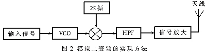 | 本文基于DVB-T标准设计并实现了一个COFDM调制器。设计中,使用了Altera公司的Stratix系列EP1S25F672C7的FPGA和Analog Devices公司的数字正交上变频器AD9857。本系统设计简单,工作稳定,输出信号的信噪比可以达到55dB以上,能够以较低的复杂度得到较高的系统性能。 1 DVB-T调制器的系统方案 DVB-T调制器中COFDM调制系统是调制器中的主要部分,也是抗多径的OFDM技术在宽带无线通信中一个很好的利用。调制系统框图如图1所示。 ![]() 从图中可以看出,发射端首先由信源去复用电路将输入的TS码流分解成两个独立的连续数据流,每188字节为一个传输包;然后对每一路数据进行加扰、RS编码、外交织、卷积编码,在去复用电路中将两路合二为一(一般分层模式下用到两路流,其它模式只对一路去复用),再经比特交织器和符号交织器完成整个信道编码。编码后数据经过映射调制到对应的星座图上成为数据载波。OFDM帧形成部分将数据载波、导频载波(pilot)和TPS信道传输参数信令载波按照帧结构的要求组合在一起,形成完整的OFDM符号和帧。根据OFDM调制原理,将各个载波经过IFFT变换得到时域的数据流。之后,在每个OFDM符号前插入保护间隔,再经过D/A上变频最终形成中频信号发射到信道中去。 可见,一个COFDM调制器主要由TS码流接入、信道编码调制和D/A上变频这三个模块组成。因此,D/A上变频的好坏,直接影响调制器的性能。 2 D/A上变频的原理 一般调制器的上变频可以采用模拟方式和数字方式两种方案,图2为一简单模拟上变频的实现电路,它的原理就是利用压控振荡器的振荡频率来实现调频。首先,输入信号经过VCO与本振信号混频后得到和频与差频信号;这些信号经过高通滤波器以后,滤除掉低频分量,高频分量就可以经过放大器传输到信道中去。由于模拟电路的一些固有缺陷,例如抗干扰能力较差,精度较低等,所以这种上变频实现方法的稳定性和可靠性都较差。 随着高速器件和软件无线电技术的发展,数字上变频技术逐渐突破了模拟上变频的不足,具有调制中心频率可调、频偏可编程、调制方式可重组、调制码速率高、可实现较高的频响、可以与编码器合并扩展功能很强等优点,成为今后调制器的发展主流。