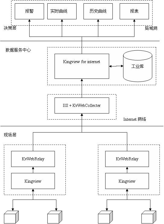 | 1. 背景 随着煤炭工业的发展,采煤机的功能越来越多,其自身的结构、组成愈加复杂,因而发生故障的原因也随之复杂。与此同时,采煤机制造商的产品分布在全国各地的煤矿,当采煤机出现故障时,制造商需要投入很大的人力和物力进行维护工作。 2. 解决方案 采煤机远程服务系统采用北京亚控公司的KingHistrian实时/历史工业库作为系统的核心,进行高速长期采集,记录采煤机的大量工况数据;采用组态王作为现场级的SCADA软件;同时,采用组态王的作为服务中心的WebServer进行数据发布。体系结构如下图所示: 整个系统由三部分组成,现场层、数据服务中心和决策层 2.1现场层 现场层采用组态王Kingview作为SCADA,它完成设备的监控,同时,为了将现场的数据传输到服务中心,部署了KvWebRelay转发器,它通过Internet将数据转发到服务中心。 在现场层,可以将Kingview和KvWebRelay部署在一台计算机上。 2.2 决策层 在决策层中,决策者可以通过IE浏览到各种数据,如实时曲线,历史曲线,报表,报警等信息,通过这些信息决策者可以对设备的工况信息分析和诊断。 在这一层上,用户无需部署其他软件,只需要IE浏览器即可。 2.3 数据服务中心 数据服务中心采用北京亚控的KingHistrian实时/历史工业库作为数据存取平台;同时,为了采集部署在全国各地的设备数据,需要部署IIS+ KvWebCollecter作为采集服务器,在线或者周期性采集设备数据,传入组态王;Kingview For Internet作为WebServer提供Web服务,决策者通过IE访问工业库中的数据。 在数据服务中心,可以将IIS + KvWebCollecter和KingHistrian部署在一台计算机上;将Kingview For Internet部署在另一台计算机上。 3. 主要的系统配置 3.1. KingHistorian 工业实时数据库KingHistorian是亚控科技最新推出的产品。工业数据库KingHistorian定位于企业一体化方案中的数据中心和应用平台,能够为企业的各级人员及时的提供所需要的信息。它不仅是企业管理信息系统(MIS,Management Information System)与分布控制系统(DCS,Distributed Control System)之间的桥梁,而且是整个生产执行系统(MES,Manufacturing Execution System)的基石。 通过使用工业实时数据库KingHistorian,可以实现: (1)高速在线存储长达数年的企业生产过程数据; (2)组态画面与数据采集功能分离; (3)为生产过程优化提供数据; (4)为企业扩展提供参考模型; (5)为事故追诉提供事实依据; (6)为企业MIS、ERP、MES集成提供平台。 3.2. KingView 组态王 组态王6.52是一个具有丰富功能的HMI/SCADA软件。可用于工业自动化的过程控制和管理监控。组态王6.52为自动化系统工程师提供了集成、灵活、易用的开发环境和广泛、丰富的功能,能够快速建立、测试和部署自动化应用,来连接、传输和记录实时信息。使用户可以实时查看和控制工业生产过程。 组态王6.52具有通用的开发环境和灵活的体系结构,既可以安装在单节点上应用,也能够适用于分布式的客户机/服务器结构。还可以通过浏览器查看运行情况。 组态王6.52具有良好的开放性、可扩展性,支持多种标准,提供强大的与各种自动化设备连接的能力。提供1500多种工业自动化设备的驱动连接,支持世界知名工业自动化设备厂商的绝大多数设备,如AB、西门子、施奈德、欧姆龙、三菱等。支持DDE、OPC等通讯规范。提供与关系数据库连接的途径和方法。 4. 系统性能 4.1. 主要功能 1. 提供了一种全国范围内乃至全球范围的大型设备工况集中监控、分析及诊断解决方案 2. 自动监测异常发展趋势,实现在线预警 3. 基于工业库的历史数据,制造商可以建立数学模型,进行设备性能分析与系统报表,提供了新的增值空间和强大的市场竞争力 4. 支持对设备运行状态长达数年历史数据的分析决策,轻松实现大型设备的远程故障诊断与故障处理,提高设备制造商的客户服务质量,降低运营成本 5. 基于Internet网络的部署,使得方案更易于实施 6. 支持断点续传和数据缓存,保持数据的完整性 4.2. 技术性能 1. 存储速度每秒超过20,000点 2. 任意变量任意一天的历史数据(数据量为10,000条记录)不超过5秒 3. 单点工业库服务器最大支持100,000点 4. 支持多达256个并发客户同时存储和检索数据 5. 高效的数据压缩算法保证最小的存储空间 6. 功能强大的计算引擎,可进行各种统计计算 7. 提供功能强大的趋势比较、趋势分析与报表系统 5.总结 亚控科技的远程/诊断解决方案,基于先进的Internet技术,提供了功能强大的可视化管理和数据分析功能。无论设备供应方维护人员深处何地,都可以通过可视化管理工具进行现场监控与故障诊断,实现对多个远程生产设备的集中监测、分析和诊断。本解决方案为优化运行生产设备与高效管理企业起到了举足轻重的作用。 |