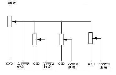 | 一、 系统工艺介绍: 印染行业是风机水泵类负载的大户,而且有较多的机械承轴传动,该类负载的运行时间都是连续的。各个厂家根据所加工产品品种不同、质量的不同,需要对风机、水泵、机械承轴传动的负载作不同程度的调节,同时变频节电器在该行业的应用后减少机械的维修,提高产品的质量给企业带来极大的经济效益。在原布的加工过程之中,原布经漂白或是染色之后仍有极小量的化学药物残留物,对人体有极大的危害。必需经过数次水洗方能除掉残留物。在水洗的同时让洗过的原布紧贴热筒一起传动,经热筒加热去温,再由收卷设备收成一卷。在生产过程中主变频器拖动,一、二组热筒机械承轴拖动,收卷设备拖动等等必需比例连动。否则将影响产品的质量或造成设备的损坏。 二、 系统配置 本系统采用了一台SY6000-11KW 380V的变频器作为主变频拖动,另外三台SY6000-4KW 380V的变频器其中二台作为一、二组热筒机械承轴变频拖动,另一台作为收卷设备变频拖动。主变频器由外接电位器给定,而加三台由外接电位器提供可调电位再接角度电位器,由角度电位器输出的模拟量给定。现实比例连动。电路图如下: