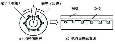 图1直线电机的转变过程 由定子演变而来的一侧称为初级,由转子演变而来的一侧称为次级。在实际应用时,将初级和次级制造成不同的长度,以保证在所需行程范围内初级与次级之间的耦合保持不变。直线电机可以是短初级长次级,也可以是长初级短次级。考虑到制造成本、运行费用,目前一般均采用短初级长次级。 直线电动机的工作原理与旋转电动机相似。以直线感应电动机为例:当初级绕组通入交流电源时,便在气隙中产生行波磁场,次级在行波磁场切割下,将感应出电动势并产生电流,该电流与气隙中的磁场相作用就产生电磁推力。如果初级固定,则次级在推力作用下做直线运动;反之,则初级做直线运动。 直线电机的驱动控制技术 一个直线电机应用系统不仅要有性能良好的直线电机,还必须具有能在安全可靠的条件下实现技术与经济要求的控制系统。随着自动控制技术与微计算机技术的发展,直线电机的控制方法越来越多。对直线电机控制技术的研究基本上可以分为三个方面:一是传统控制技术,二是现代控制技术,三是智能控制技术。 传统的控制技术如PID反馈控制、解耦控制等在交流伺服系统中得到了广泛的应用。其中PID控制蕴涵动态控制过程中的过去、现在和未来的信息,而且配置几乎为最优,具有较强的鲁棒性,是交流伺服电机驱动系统中最基本的控制方式。为了提高控制效果,往往采用解耦控制和矢量控制技术。 在对象模型确定、不变化且是线性的以及操作条件、运行环境是确定不变的条件下,采用传统控制技术是简单有效的。但是在高精度微进给的高性能场合,就必须考虑对象结构与参数的变化。各种非线性的影响,运行环境的改变及环境干扰等时变和不确定因数,才能得到满意的控制效果。因此,现代控制技术在直线伺服电机控制的研究中引起了很大的重视。常用控制方法有:自适应控制、滑模变结构控制、鲁棒控制及智能控制。 近年来模糊逻辑控制、神经网络控制等智能控制方法也被引入直线电动机驱动系统的控制中。目前主要是将模糊逻辑、神经网络与PID、H∞控制等现有的成熟的控制方法相结合,取长补短,以获得更好的控制性能。 直线电机在数控机床中的应用实例 活塞车削数控系统 采用直线电机的直线运动机构由于具有响应快、精度高的特点,已成功地应用于异型截面工件的CNC车削和磨削加工中。针对产量最大的非圆截面零件,国防科学技术大学非圆切削研究中心开发了基于直线电机的高频响大行程数控进给单元。当用于数控活塞机床时,工作台尺寸为600mm×320mm,行程100mm,最大推力为160N,最大加速度可达13g。由于直线电机动子和工作台已固定在一起,所以只能采用闭环控制,图2所示为该单元的控制系统简图。