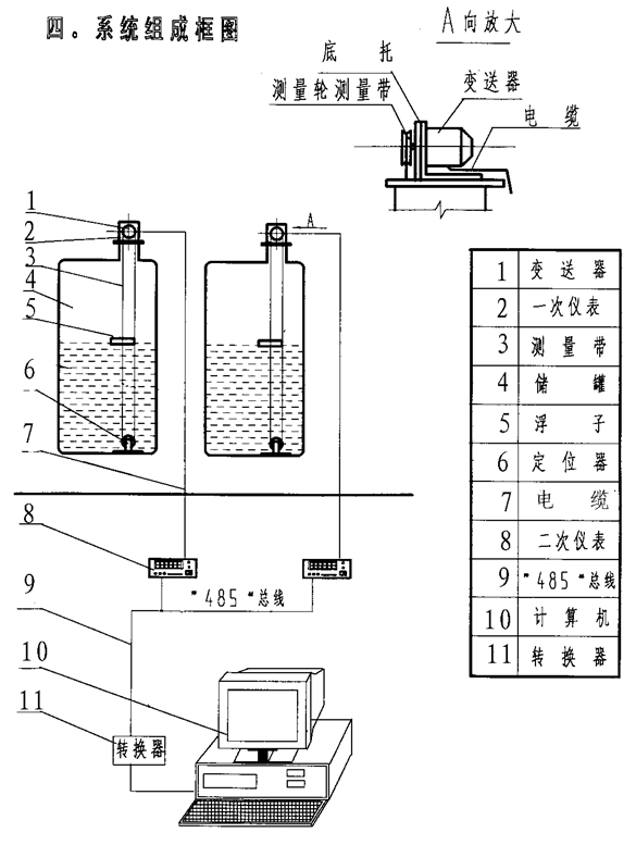 由一次表和二次表便可以组成一个单罐测量管理系统,所谓的一对一系统。多个一对一系统又可以通过"485"总线与计算机联网,组成罐群管理系统。这里所用的一次表和二次表都是一样的,使用、维修、管理都非常简单容易。 五、二次表的功能 1. 本二次仪表是以单片机为核心控制部件的本安型仪表。 2. 显示罐号、液位、高低液位报警设置值。 3. 超高、低液位声光报警及其消除。 4. 仪表精度校正功能。详见使用说明书。 5. 初始液位的设置、显示。 6. 设有"485"计算机总线接口。 六、计算机管理系统 罐群集中管理,通过"485"总线与上位机联网。制作的专用软件适用于各用户的使用要求,功能多,显示直观,操作简单,通过该软件的"帮助"功能,指导操作者掌握使用方法。各种数据均可在此获得,并可通过打印机打印报表。 专用软件的主要功能: 1. 参数设置:如号位,物科名称,物位上下限报警值,比重、容器容积等。 2. 监控整个罐群的工作情况,实时液位高度、重量、温度、图表、数据一目了然。 3. 异常报警功能。 4. 帮助:指示操作者使用方法。 5. 打印:使用该功能,即可打印报表。 6. 记录:使用该功能,可保存罐群检测结果和查阅先前保存的记录。 七、使用维护注意事项 | 1、智能数据处理器(或二次表)应安装在安全区控制室内避免与有腐蚀性气体接触。 2、在正确的安装和使用下,一般三年内勉维护。 3、如有特殊情况系统工作不正常,操作人员应立即关闭电源,通知我公司派人员进 行检修或更换。 4、该成套系统不得随意拆装和更换元器件,否则出现故障一律由用户承担。 | 八、运 输 保 管 | 为了确保测量系统的本安性能,在运输与搬运过程中,应避免强烈振动和冲击,运 输和保管其间应防止受潮,应存放在阴凉、无腐蚀性气体及通风良好的环境中。 |