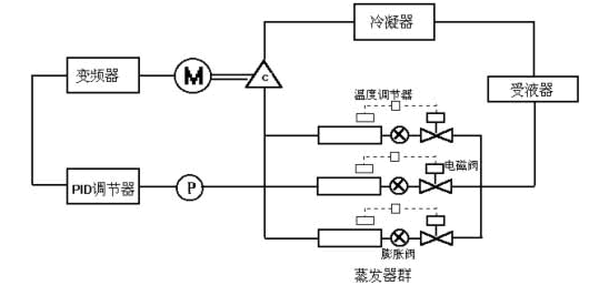 | 食品的冷冻、冷藏要使用冷冻机,因而在食品行业,制冷机的使用非常普及,其制冷机机的控制正越来越多地采用变频器。 一.变频器使用的目的: 对制冷机内的压缩机采用变频控制(压缩机能力可变控制),可以使制冷机对于冷冻负载的变动始终以接近设计条件的高效率进行运行。这就是将变频器应用于冷冻压缩机的主要目的。变频器控制制冷机的主要优点如下 1) 节能 相应于冷却负载的变化改变压缩机转速,使其始终运行在最佳点。从而减少所需动力。 2) 恒温 采用连续的容量控制可使冷藏品温度变化很小。另外,即使对于临时的冷却负载增加,也可以依靠迦 速来减小冷藏品的温度变化。 3) 冷冻能力的改善 密闭式电机直接连接的压缩机在50hz地区的能力只有60hz地区的80%,而变频器控制则可以 做到与电源频率无关,始终保持一定的能力。 二.设备组成