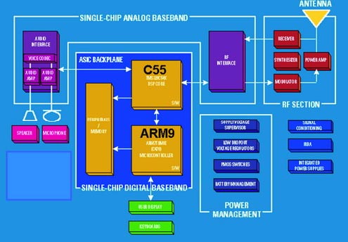 嵌入式应用包括信号处理算法与控制算法,在多种实时嵌入式系统中,这两种算法共同执行必需的功能,因此我们应了解控制算法与数字信号处理器 (DSP) 算法是如何实现互操作性的。在手机和 MP3 播放器等应用中,要解决上述互操作性问题,传统做法是分别用 RISC 处理器和DSP来处理控制算法与信号处理算法。例如,在手机中,信号处理功能负责处理音视频应用中的回声消除与编解码工作。由于DSP 架构是专门设计用于执行信号处理算法的,因此信号处理算法在 DSP 上的 运行效率很高;而手机中的控制软件则负责执行状态机,即控制用户界面、键盘及其它非信号处理功能。 开发包括信号处理与控制算法且要求这两种算法间实现互操作性的嵌入式应用时,我们要面临几大挑战。举例来说,当我们将桌面应用或其它复杂应用连接到嵌入式设备上时,让该嵌入式设备的DSP/RISC 内核实时工作并适当地进行代码分组(code partitioning)会相当困难,因为要这两种不同内核实现同步操作需要进行大量的工作。视频或协议处理等众多高级嵌入式应用会增加多内核上代码分组的难度,而且大多数代码分组工作都要由编程人员完成。以采用德州仪器 (TI)TMS320C55X DSP 与 ARM RISC 处理器的双内核架构为例来说,DSP 执行信号处理任务,而 ARM 9 则执行控制功能 (如图1 所示)。