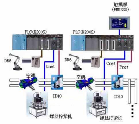 | 1. 概要: 利用K200S的Profibus-DP控制车辆空调组装线 -适用领域:电子、电气 -产品种类:K200S,Profibus(G6L-PUEA),Cnet,PMU330 2.系统构成 ![]() 3.主要功能 1) 用K200S来控制流水线(Bosch公司:T2)的ID40(Bosch)Pnet控制,最终实现对流水车辆空调组装线。 2) 添加ID40的GSD文件,利用Sycon,软件设定Pnet通讯 3) 工作台到ID40处被感应到后,然后螺丝拧紧机拧紧螺丝,随后DR6(ROBOT)改变工作台位置并拧紧螺丝。 4) 利用触摸屏来设定参数和监控流水线工作情况,PMU-330是通过Cnet和K200S进行通讯 5) 车辆空调 利用汽车的能源,把车内冷/暖控制到需要温度,风向和风量。 |