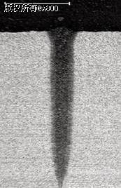 如果使用光闸或纤-纤耦合接头,必须使用100微米的光纤出, 50微米的光纤进,或使用200微米的光纤出,100微米的光纤进。以上两种状况光束质量可以达到8mm.mrad。这与盘式激光相当,而焊接的结果,两种激光器非常接近。 综合起来,在 Fraunhofer使用的光纤激光系统非常稳定,没有发生过任何问题。而灯泵浦系统本身则存在非常多的常规问题。有些其它的光纤激光用户提到过,在操作中的光学反射问题,到目前为止对我们而言还没有造成任何困扰。我们的试验数据表明,光学反射没有对激光器的输出功率造成任何影响。即使如此,我们在实际操作中不主张使用与工件垂直的光束设计,而使用微微倾斜6度左右的角度。在切割和焊接钢材和铝材时没有发生 在我们的研究中,由于光纤激光优秀的光束质量,焊接的深度和速度可以达到与电子束焊接相当的细窄焊缝。图2显示实际焊接的效果。 4千瓦光纤激光焊接8毫米厚的普碳钢板(汽车齿轮箱中的机构)。