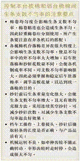 | 有色棉纤维的颜色属天然色,无需经过染整工艺且不易褪色,既可降低成本,还可减少个别染料对人体的有害影响,因此,在巿场上正越来越受消费者喜爱。随着育棉技术的不断进步,彩棉颜色种类逐步增加,而彩棉纺纱技术和管理工作的逐步改进,也使有色纱品种和质量逐步提高,从而促进了彩棉生产技术的发展。 有色棉纤维来自彩棉,是采用科学方法育出的新棉种。从上世纪九十年代起,中国尝试混配低比例彩棉纺纱,随后在生产实践中摸索出纺有色棉纤维的实际经验——即如何使有色纤维在白棉纱中分布匀均。 棉的色彩与土壤、水份中的色素、气候等有关,中国新疆适合培育彩棉,所以成为许多大型纺织服装集团的彩棉原料生产基地。目前其他地区也在试种。 有色纤维的产品质量指标如同本色纱一样,不仅要把好棉结杂质、条干、断裂度等质量关,而且还要减少“有色疵点和白色疵点”以及攻破“色差”关。“色差”非同小可,它要求同一批次内无色差,批次间也不能有色差,否则在棉纱批次交替时,会使布面产生大量色差,造成布疵。 色差产生自两方面:即纺同一品种,用同一品种的有色棉纤维纺纯有色棉纱时,由于有色棉纤维产地和批次不同也会有小的色差;有色棉纤维成熟度不同也会产生色差,加上土壤不同、所加水份和肥料不同也会产生色差。 纤维色泽均匀才能保证成品不出色差。 目前,彩棉尚属育棉新技术,纤维支数低,品质长度短,单纱强力低。为解决这一问题,在有色纤维纱中一般可混入少量白色棉纤维,以提高单纱强力。 随着有色纤维纺纱和管理工作不断加强,可以逐步增加有色棉纱内的有色纤维的含量,甚至生产纯有色棉纤维纱。 加强混配工作 用X射线衍射法测知,棉纤维的结晶度与成熟度成正相关趋势,而色素可以发生在纤维结晶区表面,因此纤维的得色性与纤维的成熟度有关。成熟度好的得色深,差的得色浅,深度差异最高可达60%。因此,配棉中纤维成熟度是重要指针之一,色纤维批与批间也会产生比色差,所以在批与批交替时,配棉一定要减少棉纤维色泽变化,从而可以减少成纱色差。 纯彩棉纱可用棉包混棉,若加少量白色纤维,一般可采用棉条混棉。 ![]() 彩棉配棉与白棉配棉基本相似,首先要减少批与批间比色差波动,其次应以成熟度为掌握重点,减少五种有害疵点的含量;注意减少批与批间纤维品质长度和纤维支数的差异和波动。 同批纱线一定要选用同一色度的原料,否则纤维成熟度和细度对成纱色差都有影响。 生产实践证明,影响成纱色差的因素应是成纱的实际含色量对设计含色量的增减幅度;而成纱含色的增、减幅又随设计成纱含色量的减少而增大,即棉纱色越浅,有色生条定量变化最终对成纱色差影响最大,所以控制色差应从浅色棉纱入手,逐步提高。 成熟度是棉纤维品质的重要指标之一,因为纤维的成熟度对纤维强力、细度、色泽、天然转曲、吸湿性、染色能力都有很大关系。成熟度好的色纤维颜色正常,成熟度差的棉纤维颜色偏浅。 纱线支数(NBm)和强力(PBm)对成熟度(Kg)的关系。 有色棉纤维的育棉技术尚在逐步提高中,目前有色棉纤维的纤维长度低,纤维支数也低,与成熟度和棉种有一定关系,因此掌握有色棉纤维成熟度不可忽视。 ![]() 生条定量的控制 如果在有色棉纤维中加入少量白色纤维纺纱,一般采用棉条混棉,生条定量的差异在一定程度上会影响到成纱色差,特别是临台差异影响更大。 一般控制生条重量偏差的设计标准值的±8%的方式进行控制。即有色和白色条子重量在±8%内波动,这种波动对成纱色度的影响,按原设计成纱色度的深浅不同,会有轻有重。 在生产中发现,如果考虑有色纤维条子的重量偏差,也要考虑白色纤维部分的条子的重量偏差。当然在实际生产中,白色生条也会有重量偏差。但实际上,并条机后喂入的几条有色条子同时偏重,两白色条子同时偏轻,或反而言之的机遇都是极少的。 如果掺入低比例白色棉花与有色棉花混合纺纱时,通常白色生条不一定要设专纺梳棉机,一般可借用同一纱支的白色生条喂入并条机;若用38mm有色涤纶短纤维,按65:35比例纺涤棉纱,则有色棉纤维和有色涤纶二者都要设专纺梳棉机台。由于二者的梳棉专用机台少,因此梳棉机台与台间的生条定量差异不宜太大,即使采用±8%范围控制定量。但如果一台是+8%,另一台是-8%,实际定量差异已拉大。 涤棉混纺纱和有色涤纶所设专纺梳棉机台较少,如果只开二台梳棉 ![]() 机更要注意,必要时可考虑缩小生条定量的控制范围,比如可将±8%缩小为±4%~±6%,加强控制。 浅色有色棉纤维纺制浅色纱,要注意控制批与批之间的色差。由于浅色棉纱对有色棉纤维的含量增减较敏感,所以在纱支更换或有色棉纤维批次更换时,容易与上一批产生色差,故生条定量的控制应固定或参照上一批的情况。即上一批有色部分是取上偏差,白色部分是取下偏差。 棉条混棉的生产管理 采用棉条混棉,并条机后的断条、漏条、错桶所产生的色差更难以控制,稍有疏忽不合格棉条就会流入下工序,危害性非常大,所以采用条子混棉时,要控制色差问题时,应做好多种工作。 加强工人质量意识教育,不能错桶,严格按工艺设计所规定的条子喂入方式喂入,多巡回,把好断条、漏条关,一旦断条,一定要彻底清除机前桶内错,做好自身质量把关。 下工序做好对出工序的质量把关,杜绝上工序