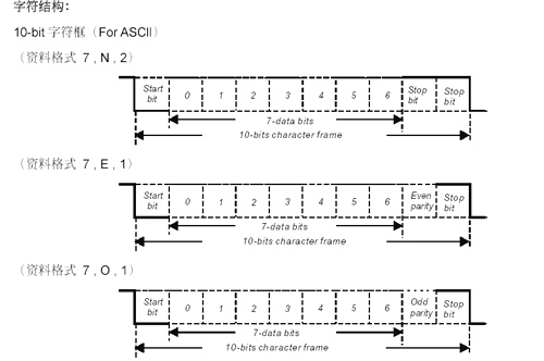 1 引言 8051单片机串行异步通讯的方式用一个起始位表示字符的开始,用停止位表示字符的结束。其每帧的格式如下:在一帧格式中,先是一个起始位0,然后是8个数据位,规定低位在前,高位在后,接下来是奇偶校验位(可以省略),最后是停止位1。用这种格式表示字符,则字符可以一个接一个地传送。在异步通讯中,CPU与外设之间必须有两项规定,即字符格式和波特率。字符格式的规定是双方能够在对同一种0和1的串理解成同一种意义。原则上字符格式可以由通讯的双方自由制定,但从通用、方便的角度出发,一般还是使用一些标准为好,如采用ASCII标准。 2 通讯约规 2.1 台达VFD变频器通讯约规 |