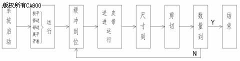 图3 控制流程图 运行速度的统一:生产线连续运行速度V1由校平机的速度调节电位器R5给定。修边、碎边、展平的电机速度可以通过下面的公式计算出与V1同步的转速: