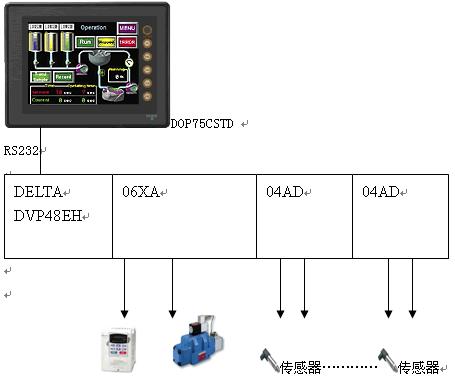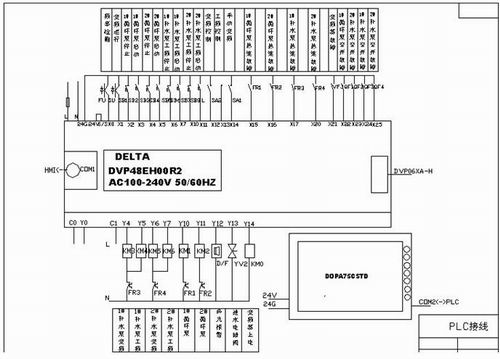 人机界面选取台达7.5”彩色触摸屏。人机界面(HMI)可显示工艺流程、工艺参数和设备状态,HMI图形接口友好,只需直接对图示进行手动点触操作,因此操作简便灵活。