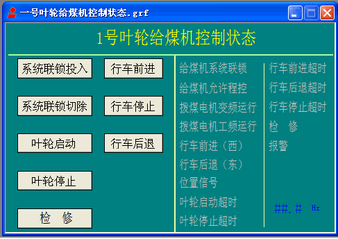 手动配煤是由操作人员根据现场的煤位和卸料小车的信号,在上位机上手动操作小车的运行/停止,卸料/直通,定点/连续等功能,完成原煤仓的配煤工作。