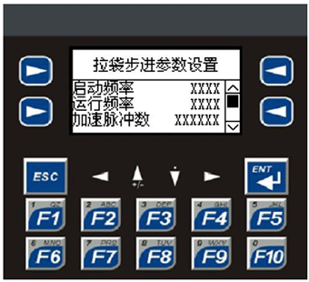 3系统设计 人机界面操作及显示系统如图1所示。根据用户要求,设定打包袋数、每分钟的包装速度,系统可精确显示出实际产量(当前完成袋数)和准确封口温度(摄氏度),能够对计量数手动清零,具有正常的启动、停止及点动按钮。并且可以根据用户要求设置画面带有权限保护。 下面对DXD全自动包装机的各控制部分做一简单说明: 制袋控制系统:制袋过程的启停有两种控制方式,即机侧按钮和人机界面操作。无论采用哪种方式,当操作者按下启动按钮时,拉袋步进电机根据XLE103设定的各种参数工作,步进电机进给,XLE103实时检测步进电机的进给量。当达到设定范围时,开始检测拉袋停止传感器,传感器信号为ON时,拉袋到位,步进电机进给停止,计数加1。然后进入下一次拉袋准备。在整个制袋过程中,XLE103实时跟踪、显示各个数据变化,一旦有故障(如电机堵转等)或是不合理的数据出现,整个机器就会停止,并强行在屏幕上显示并报警,并接通警报器,及时通知操作人员。参数设定参见图2。