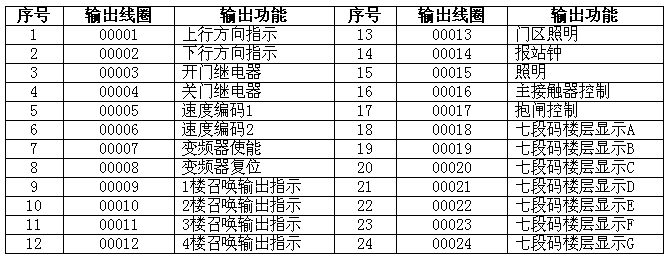 输入输出单元为PLC的I/O接口部分,主要由厅外呼叫、轿箱内选层、楼层及方向指示、开关门、井道内的上下平层、上下强迫换速开关、门锁、安全保护继电器、检修、消防、泊梯、称重等单元构成。输入单元为:(1)厅外呼叫单元,用来对各层站的厅外召唤信号进行登记、记忆和消除,而且兼有无司机状态的“本层厅外开门”功能,全集选方式的呼梯信号为2N-2个(N为层站数),下集选方式的呼梯信号为N个;(2)轿箱内选层单元,负责对预选楼层指令的登记、消除和指示,呼梯信号数为电梯停站层数N;(3)开关门按钮,输入PLC控制轿门的开闭(厅门也同时动作);(4)上下平层装置,用来保证电梯轿箱在各层停靠时准确平层,通常设置在轿顶,电梯轿箱上行接近预选层站时,上平层感应器限进入遮磁板,电梯仍继续慢速运行,当下平层感应器再进入遮磁板时,上行接触器线圈失电,制动器抱闸停车;(5)上下限强迫换速开关,用于保护电梯的高速运行安全,避免电梯出现冲顶或蹲底事故,当电梯到达上下端站时,装在轿厢边的上下限强迫换速开关打板,信号输入PLC,PLC发出换速信号强迫电梯减速运行到平层位置;(6)门锁装置(或轿门和厅门联锁保护装置),轿门闭合和各厅门闭合上锁是电梯正常起动运行的前提;(7)安全回路,通常包括轿内急停开关、轿顶内急停开关、安全钳开关、限速器断绳开关、限速器超速开关、底坑急停开关、相序保护继电器、上下限极限开关等;(8)检修、消防和泊梯,检修、消防和泊梯为电梯的三种运行方式,检修运行为电梯检修时的慢速运行方式,消防运行有消防返回基站和消防员专用两种运行状态,泊梯状态,消除内选和外呼信号,自动返回泊梯层、关门并断电;(9)称重单元,用来检测轿厢负荷,判断电梯处于欠载、满载或超载状态,然后输出数字信号给PLC,根据负载情况进行起动力矩补偿,使电梯运行平稳。输出单元为:(1)楼层及方向指示单元,包括电梯上下行方向指示灯、层楼指示灯以及报站钟等,目前的方向及层楼指示灯主要有七段码显示方式和点阵显示方式,本系统为七段码显示方式;(2)开关门单元,用于控制电梯的厅门和轿门的打开和关闭,在自动定向完成或电梯平稳停靠后,PLC给出相关指令,由变频门机完成开关门动作。