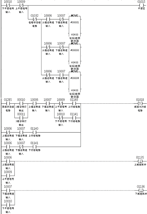 电梯控制系统是集选式控制方式,适合采用模块化编程方法,下面介绍几个模块的梯形图程序: