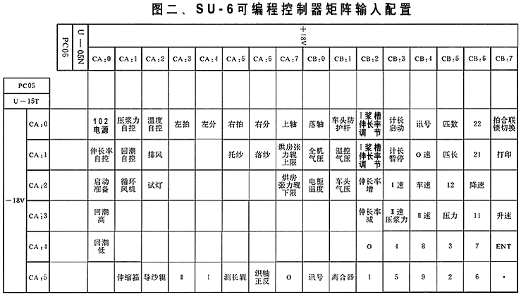 GA-333浆纱机使用SU-6可编程序控制器的系统配置情况: