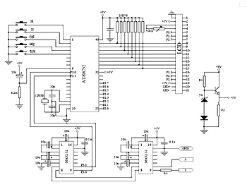 | 本文设计的井下智能阀门控制系统,采用由单片机组成的计时与控制单元,配合多级封隔器,实现一次作业下井,配合地下计量和化验,按设定时间(也可根据需要使某些设定时间失效)进行分层和轮番采油。系统采用双CPU控制,主机能在现场完成数据录入、处理和显示。从机选用PIC单片机和硅振荡器,使系统可在125℃高温环境中长期工作。井下控制系统的平均工作电流小于0.2mA,使用10盎司的电池供电,可连续工作1万小时。 系统工作原理 系统的基本工作原理是根据用户对油井测层的需要,在地面对准备下入井下不同深度目的层的各智能阀门进行多个开关时间设定,然后连同封隔器及防砂管一齐下入井中。各智能阀根据所设定的时间打开或关闭相应的控制阀,(也可根据外界条件,使某次所设定的关阀失效),自动切换目的层,再配合地面测试仪器,定量读取有关数据。 ![]() 图1:系统原理框图 系统主要有两部分组成:阀门动作时间设定器(下称主机)和井下阀门控制器(下称从机),系统原理框图如图1所示。主机设计为带有液晶显示的手持设备,可在地面对各从机进行多个时间设定,对设定的时间数据进行处理和显示,并能对设定时间的正确与否做出判定。从机下到井下后,可根据所设定的时间,并与有关流量仪器配合动作,驱动电机拖动相应的阀门打开或关闭。 主机部分的硬件电路设计 主机主要包括人机界面和通讯模块,采用AT89C52单片机作为控制核心,其电路如图2所示。系统共设计了5个按键:“加”键、“减”键、“右移”键、“确定”键和“取消”键。操作人员可通过该组按键,依据日历的方式完成多组时间的设定和确认。显示的时间数据包括“年、月、日、时、分”,数据量较大。因此选用192×64个显示单元的LCD显示器。单片机能够直接访问LCD显示器,省去了单片机于LCD之间的液晶显示控制器,降低了系统成本。主机与丛机之间采用RS-232串口通讯,完成数据和控制指令的传输。 图2:主机硬件电路图 从机部分的硬件电路设计 从机由电池供电,需要长时间独立工作于井下125℃以下的高温环境中。因而耐高温、低功耗、高可靠性是从机设计中首要考虑的问题。本系统采用PIC16F876A单片机为核心,实现油井阀门控制器,其硬件结构如图3所示。从机主要包括:时钟控制信号、工作电流控制器、阀门电机驱动器、流量信号采集器。PIC16F876A是美国Microchip公司生产的一种28脚8位单片机,采用哈佛总线结构,在3V工作电压、32KHZ时钟频率时,典型工作电流小于20uA,工作温度范围为-40℃~+125℃,自带异步串行口,符合系统低功耗和高工作温度的要求。 ![]() 图3:从机硬件电路图 时钟控制信号由MAXIM公司生产的Max7378CMOJ硅振荡器提供。该芯片能够为3V工作电源的微控器提供32.768KHZ的主时钟脉冲,其典型的工作电流为11 uA。工作温度为-40℃~+125℃,具有抗振动和EMI抑制等特性,使其对污浊和潮温的工作环境不敏感,能工作于井下恶劣环境中,满足所设定时间的时钟要求。 工作电源控制器由BG1和BG2等组成,其主要作用是降低系统功耗。在从机工作的绝大部分时间内,仅需时钟工作即可。此时单片机②脚输出低电平,工作电源控制器输出电压Vc为0V。这样,从机中除时钟外其它电路均不供电。只有当所设定的各个时间到时,单片机的②脚才输出10分钟的高电平,此时,Vc电压上升到10V左右,使各部分功能电路上电10分钟,10分钟内足以完成开阀和关阀工作。此种设计方案可使从机在可靠工作条件下功耗有效减小。 阀门电机驱动器由BG4、BG5、J1、J2和IC2C等组成。为所设定的某个开阀时间到时,单片机④脚或⑤脚输出高电平驱动驱动电压正转(或反转),完成开阀(或关阀)功能。当电机正常拖动阀门行进时,电机电流小于其额定值,IC2C输出低电平,不影响驱动工作。当电机拖动阀门到位后,驱动电机堵转,此时电机电流大于其额定值,IC2C输出高电平,单片机检测到此高电平后 ,延时7秒钟后停止驱动器工作,从而完成一次关阀(或开阀工作)。 流量信号采集器由霍尔传感器IC3、IC2A、IC2B及安装在阀门控制器附近油管中的可旋转叶片(叶片上装有磁铁)等组成。其作用是结合井上的抽油作业。可使某次设定的关阀时间失效,即可根据需要改变预先设定的关阀时间。当某次设定的关阀时间到时,井上的抽油正在工作,井下的油管中有液体流动。当 有磁铁的旋转叶片转动,霍尔传感器检测到此信号后,使IC2B输出高电平,单片机检测到此高电平后,使关阀控制正常进行。如果根据井上的情况,不想让某次设定的关阀时间工作,则井上作业在该设定时间到之前暂时停止抽油系统工作,这样井下油管中无液体流动。叶片停止转动,经霍尔检测,使IC2C输出低电平。单片机检测到此低电平时,停止此次关阀控制,使系统仍处于开阀状态。 系统软件设计 ![]() 图4:系统程序流程图 图5:定时中断程序流程图 本系统采用模块化思想,应用C语言完成主机AT89C52与从机PIC16F876A的软件设计。 主机程序实现键盘扫描、LCD显示、时间数据处理和串口通信等功能,系统程序流程图如图4所示。时间数据处理子程序能够设定“当前时间”和七个设定时间,并当设定的时间数据不符合设计要求火通信失败时,用户能够根据系统错误类型的提示,自行检测并排除故障。 从机程序实现中断计时功能,每秒钟产生一次定时中断,采用查询方式检测是否有堵转或流量信号,若设定时间