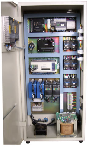 在OMRON喷气织机整体应用方案中(右图为OMRON喷气织机控制系统实物图),角度传感器采用了OMRON公司的E6B2-C型增量型光电编码器,可准确地给出织机任何定位角度,控制精度达1度。此编码器一路给PLC提供角度信号,一路给阀门控制板提供角度信号。