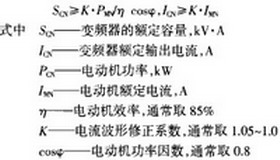 变频器应用在粘胶短纤维生产线中 摘要:介绍变频器在粘胶短纤维生产线中的应用。包括电气设计、容量的选择、控制回路设计;并对变频器应用中遇到的问题予 在粘胶短纤维生产线的各个环节中,有许多工艺参数需要调节,如浆粕与火碱的配比、粘胶的流量、大罐的液位,槽罐及管道的压力等。还有一些设备装置需要通过改变电机转速实现工艺控制,如老成时间、称量斗出料,短纤维的开松、牵伸比的矢量控制等。变频器与传统的调速方式相比有节能、装置集成度高、维护简便、无级调速、控制简单、运行稳定等诸多优点。随着变频器技术的发展,不同厂家的变频器或同一厂家不同时期的变频器,应用要求都不尽相同。粘胶短纤维生产线对变频器的动态性能、可靠性、可使用性、可维修性要求较高,下面就应用变频器应注意的几个问题加以介绍。 1.变频器选择 粘胶短纤维生产线的泵类负载,低速下负载转矩较小,通常可选择普通功能型。而对于压榨机、精练压辊、开松鼓等建议采用具有转矩控制功能的变频器。因为这种变频器低速转矩大,静态机械特性好,不怕冲击负载。 2.变频器容量 在变频器的选型设计中,变频器的容量至关重要,变频器的容量要和所驱动的负载匹配,即要满足: ![]() 应以变频器额定输出电流 为准,按变频器可配电机功率选择变频器容量。 在选择变频器容量时,还有变频器需要降容使用的几个因数要考虑: (1)变频器的运行环境温度 ABB公司规定当变频器运行环境温度在+40℃以上时,每 升高1℃,额定输出电流可减少3.5%,直~q+5o℃。 (2)安装现场海拔高度ABB公司规定当在海拔高度1000m以上时,每升高100m,最大输出功率降低1%。 (3)变频器逆变器主开关器件开关频率 当变频器开关频率超过基本开关频率(2-3kHz)时,变频器的降容系数参见各变频器相关规定。 (4)瞬时过载能力 当瞬时负载大于变频器的瞬时过载能力时,按重载或高转矩应用选择变频器容量,即通常选用大一级容量变频器。 3.变频器供电回路及控制回路 电源断路器(QF)应选用配电保护型断路器,配过热电磁脱扣器;或者采用快速熔断器。交流接触器(KM)当变频器的保护功能动作时,使变频器自动与电源隔离,保护变频器。现场主开关(Q1)作为现场检修或生产过程突发意外故障时停泵急用,在配电柜集中摆放时,现场主开关很有必要。 目前绝大多数通用变频器的整流环节采用的都是二极管6脉波桥式整流电路,对电网而言是个谐波源。是否选用输入电抗器(z1),视电源变压器与变频器容量的匹配情况、电网允许的畸变程度、同一电源上并联的用电设备与变频器之间的相互影响而定,一般以选用为好。 当电机电缆超过长度要求时,一般要求设置输出电抗器(z2),不同厂家的变频器对电机电缆的长度要求不一样。在按一般要求选择电机电缆截面时,连续运行电动机的允许电压降为5% 。变频器驱动的电动机,当变频器输出电流为额定值时,电缆上的最大电压降应小于2%UN。否则,将降低电动机的输出转矩,电机电缆应该越短越好。 当电机功率较大时,在电机控制柜上要设置电流表。电流表应测量变频器的输出电流,应选用电磁系仪表,考虑到电动机在低频运行时电流互感器可能饱和,必须选择大一级容量的电流互感器。电机FFC保护是电机内置的热保护装置,此部分回路是否设置视电机情况而定。 不同变频器外部控制接线不尽相同。一般控制模式的控制原理图,由DCS/PLC设定变频器速度,由远方DCS/PLC控制变频器启停。 4.变频器应用中碰到的一些问题及建议 (1)变频器驱动电机的空载运行 将一些变频驱动电机与粘胶泵连轴器或压辊脱开空载试车时,发现变频器进线电流与输 电流相差很大。这种现象是正常的,电机空载时,变频器的输入输出电流主要是无功电流;变频器的输入电流实际上就是中间电容的充电电流。由于电机空载时,变频器所驱动的负载远小于变频器所允许的最小负载。ABB司ACF变频器最小负载为1/8额定负载,施耐德公司ATV变器最小负载为20%额定负载,SIEMEMNS公司6SE70变频器最小负载为额定负载的一半,已超出了变频器内建电机模型的范围,输出电流大、输出电压低是变频器内部控制所致。当电机带负载时,变频器的输出输入电流,输出电压即恢复正常。 (2)变频器与上层控制系统的接口 在目前的变频器应用中,变频器与上层DCS或PLC控制系统均是分别通过开关量、模拟量I/O进行接口的。这种接口方式简单,可以满足目前大多数应用。通过RS485、Profibus、Modibus等通信方式与变频器接口,能在线修改变频器内部的各项设定,能在线监视变频器及其拖动的各项参数,但这要在DCS或PLC程序中设置相关的接口模块软件,这是发展趋势。 上层控制系统可以利用通用变频器本身所具有的PID、PI控制功能来完成某些工艺过程的调节,不仅可以简化DCS、PLC程序,而且还可以充分利用变频器的各项功能。 (3)变频器驱动对电动机的影响 变频器输出的电压波形是不同脉宽的方波,不是正弦波,它含有高次谐波分量,因而电机的各项损耗均有所上升。同时,随着转速的降低,自风扇冷却电机的冷却能力将显著降低,从而导致电机温升的提高。在特殊场合,比如导丝辊电机,可以考虑使用独立的高速强冷风扇,但这相应增加了维修工作量。变频器提高开关频率虽然可以降低电机的噪声,使电机的输入电流波形接近正弦波,但由于提高开关