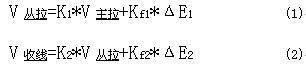 (2 )控制算法设计。根据实际控制对象的特性,要求快速响应,同时调节范围有限。因此考虑用比例的关系进行调整,因为大拉机械设计上与微拉、小拉、中拉有很大的不同。前者收线都存在卷径的变化,由卷径的变化而影响速度。而大拉的收线部分不同于前者,可以忽略卷径的变化。算法如下公式所示: