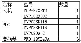 因此:r12 L1= r2 2 L2 ,即原料丝经过模具后被拉长了,伸长的系数K= L2 / L1= r12 / r2 2 经过这样的推导,就可以得出在前面控制算法中(1),(2 )两式中同步比例系数K1、K2 . 反馈比例系数Kf1、Kf2的确定是依据具体的调试效果来确定。 3.3 台达机电产品应用设计 (1)硬件构成。硬件构成参见表1。 表1 硬件选型