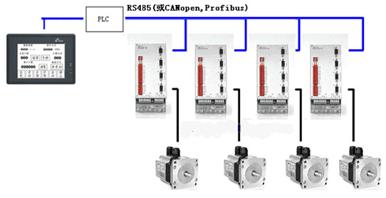 | 系统介绍 三辊压光机是对塑胶板进行压磨达到平滑见光的过程,压磨的过程是让三个滚筒之间存在转速差,从而进行拉磨塑胶板。传统的压光机是采用三台变频器来带动电机来控制滚筒,另一台变频器带动主牵引电机,由于速度的跳动比较大,出的板质量不是很高。在此介绍一下采用KINCO伺服来实现对三个滚筒和主牵引的控制。本设备采用了FX1N的PLC(加485BD模块),EVIEW触摸屏(MT506S),4套KINCO伺服。 这里是类似的机械结构,每个伺服控制一个滚筒,另外一套伺服控制出板的输送。每个滚筒的的参数大概如下:材料铸铁,半径为20CM,长度为2M,转速要求不高通过减速箱(1:95)后为每分钟六七转,热胶出来后经过下中辊之间弯成S型从上中辊中间出来,三辊的相互之间的距离可通过气缸来调节,以控制板厚。同时要求三辊的转速是可以分别设定,并且有一个总速度调节,也就是同时对四套伺服进行在分调的基础上总调,总调要求叠加到每个电机的转速是一样的。现在采用通讯控制,在PLC程序上来实现。同时要求有微调各辊和总速度。一般情况要求中辊的速度比上下辊快,而中辊受上下辊同时挤压,通过转速差来对胶进行拉摩,从而实现板再光滑程度上的改善。由于胶不能在泠凝状态停在滚筒上,否则会损坏滚筒,也就是在滚筒有胶时不能停机,要求在故障时能快速复位运行。同时对速度要求比较平稳,波动大的话会出现条纹。 控制部分框图 ![]() 总结 为全球客户提供中国人的机器自动化解决方案是深圳市步进科技有限公司的企业理念和经营宗旨,此次三辊压光机项目,该系统上位机采用触摸屏来控制各辊电机的转速,要求在触摸屏上能对各辊伺服进行启动停止复位控制,对速度进行调节,还有总速度调节,也就是同时对四套伺服进行在分调的基础上总调,同时能控制板的厚度的调节,良好的人机界面,操作方便简单。前面讲的伺服电机要求在故障时能快速复位运行。同时对速度要求比较平稳,波动大的话会出现条纹。在这里主要采用了KINCO伺服SEQUENCE编程的灵活性实现故障的快速复位。还有采取了该驱动器强大的通讯功能,通过PLC通讯控制4套伺服电机提高了客户设备的可靠性,提升了客户设备的工作效率和满足了客户的工艺要求,客户反映非常满意。 |