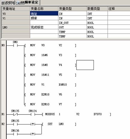 | 摘要:本文主要讲述了利用EC20 PLC在陶瓷印花机中的应用,通过此次应用,加强了该设备的自动化程度,提高了系统的工作效率和可靠性。 一、概述 随着人们生活水平的日益提高,对建筑中瓷砖的美观要求也越来越高,形形色色各式色彩的瓷砖逐渐进入了人们的视野。 瓷砖上的花色是如何作出来的呢?本文介绍的陶瓷平板印花机就是将压好的砖坯上釉印花,再经过窑炉烧制就作成了美观的瓷砖,该印花机可印400*400到1000*1000的瓷砖,印600*600的瓷砖可达到每分钟14次,且调整容易,转换印花规格时不需更换零件,只须调整夹砖定位的行程和控制参数即可。 二、系统控制组成及其工艺要求 A)、系统构成和I/O配置 1.) 机座:用来支撑和安装各种印花部件的机架,保证整机运行时的平稳和水平. 2.) 花网架::支撑花网使花网升起清洗.换网或下降准备布釉印花. 3.) 花网:按瓷砖设计图案制作好的丝网,当印花时釉料透过网孔粘附在砖坯上,经过烧制即 制成成品砖. 4.) 送砖部分:由送砖皮带、变频和电机构成,用于将砖坯送入印花机和将印过的砖坯送出印 花机至下一个工序. 5.) 印砖部分:由印花电机、变频、机头、刮刀构成,印花电机带动链条驱动机头前后移动,同时刮刀配合向前、向后、压紧、松开。 6.) 定位汽缸:当砖坯离开进砖检测电眼时延时升起挡住砖坯定位。 7.) 托铁:当定位汽缸上升、送砖皮带停止时托铁上升使砖坯升起缓停到定位处。 8.) 夹板:当砖坯准确停止后夹板夹紧砖坯以便印花时砖坯移位。 9.) 人机界面:显示变频器频率,设定各种动作延时时间,手动控制及实时报警显示。 B)、控制要求: 1)手动和自动两种工作状态可自由切换.手动方式时各部件均可通过按钮或人机界面直接操作调整,但其中多个点动按纽需在PLC内转为闭锁按纽。 2)自动运行时有三种印花模式,布釉印花,单次印花,重复印花. 3)在印花过程中,有时会出现断停皮带已停,但后面釉线的砖坯推挤使进砖电眼检测到砖,造成停机,因此在程序中增加了储砖功能,即印花时又检测到砖坯信号,等待印花完成复位再印,清除储砖记录,保证了印花机连续高效的运行. 三、系统控制技术方案: 输入20点,输出14点的I/O配置,选用艾默生EC20系列40点PLC EC20-2416BRA(24入/16出) ,HMI采用EView的触摸屏。送砖电机和印花电机选用两台艾默生SK系列系列1.5KW变频器进行控制。 3.1、方案框图 ![]() SK系列变频器频率通过MODBUS总线的通讯方式给定,PLC利用输出端子控制SK系列变频器的启动和停止。 3.2、变频器通讯协议设定 变频器频率给定通过PLC给定方式, SK系列变频器支持MODBUS协议,可与EC20 PLC组成485网络,下面是变频器端设置的参数: (1)变频器通讯速度 ![]() 43号参数波特率需要和PLC系统块中通讯口设置一致。 (2)变频器通讯地址(键盘设定) ![]() 44号参数应该和网络上PLC和MODBUS设备地址不同,否则产生地址冲突。 (3)控制端子设定(键盘设定) SK变频器选择通讯控制时,可设置PR11=0,端子B4必须和24V端子接通,屏幕显示“rd”,变频器准备就绪,这时变频器才能控制。如果B4和24V断开,屏幕显示“ih”,变频器禁用。 (4)控制字使能位设定(键盘设定) 串行通讯控制通过控制字PR6.42来实现,PR6.43是控制字使能位。首先设置PR6.43=ON,这样PR6.42才有效。PR6.43是高级参数,需要映射到Pr71-Pr80内,并在Pr61-70内修改。 (5)控制字设定(通过PLC程序改写) (6)频率设定(键盘设定) 由于SK变频器没有变频器频率给定参数,所以只有通过多段速预制值来实现。 ![]() 5号参数要设为Pr,表示“4个预制速度”控制方式。只有在此模式下,变频器才能通过串口通讯设定频率。 (7)预制频率(通过PLC程序改写) ![]() 18号参数为预制频率1,PLC可以通过更改PR18的值来修改变频器频率。PR18对应寄存器地址(协议级)=18-1=17,PLC通过通讯修改协议地址17的值改变变频器频率。 (8)读取频率(通过PLC程序读取) PR85是电机频率,PR85对应寄存器地址(协议级)=85-1=84,PLC通过读取协议地址 84的值得到变频器实际运行频率。 3.3、. PLC设置 1、通讯口设置 如图: ![]() 站号即PLC地址,网络上必须唯一。MODBUS主站,RTU模式,其他和变频器一致。 2、PLC程序说明 2.1、MODBUS指令说明 PLC是MODBUS主站,变频器是MODBUS从站。PLC通过MODBUS指令发送帧给变频器来读写变频器参数,变频器收到帧后根据不同的功能码返回帧。 帧结构: ![]() MODBUS指令格式: MODBUS S1 S2 S3 其中:S1是PLC的通讯端口,只能是端口1,因为PLC的端口0只支持MODBUS从站,不能发送数据。S2是发送数据起始地址,S3是接收数据起始地址 使用MODBUS指令前,必须把发送数据赋值到S2开始的地址中。 ![]() 四、结束语 本系统具有以下几个特点: 1.连续控制精度高,工作稳定。 2.新增储砖功能,减少故障停机,提高工作效率。 3.PLC内存容量大,能存放大量工艺参数,便于用户生成不同规格的产品,只需简单的调整,即能切换到不同的产品线的生产。 |