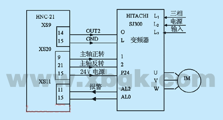 附图 日立变频器与华中世纪星数控系统的联接图 日立变频器提供了控制变频器频率输出值的模拟输入端口。模拟输入端子组包括位于控制连接器上的[L>、[OI>、[O>和[H>等端子,其中[O>用于输入电压,[OI>用于输入电流。所有的模拟输入信号必须使用模拟地[L>。