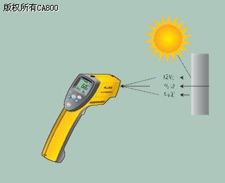 测量技巧:记下马达轴承的温度测量基准,以方便比较。以平坦的黑色区域作为目标,以保证测量的一致性和准确度。 4.如果温度显示轴承过热,应该制定维护计划,更换或润滑轴承箱,从而降低或避免马达故障带来的昂贵费用。 使用Fluke 66 和 68型红外式测温仪 只需按下测温仪的板机,即可激活Fluke 66 和 68型测温仪,开始读取测量结果。释放板机,即可锁定读数,观察最终的测量结果。在停止操作7秒钟之后,测温仪的电源会自动切断。 测量模式按钮:逐次按下MODE(模式)按钮,在副显示区域会依次显示最大(MAX)、最小(MIN)、差分(DIF)、平均(AVG)、高温警报(HAL)、低温警报(LAL)、发射率调节(EMS)或温度探头模式(PRB)、副显示区域模式 储存和调取测量结果:Fluke 66 和 68型测温仪可以测量和储存12个测量结果。 1. 为了保存测量结果,请按下并保持住测量板机, 2. 然后按下并保持住MODE按钮,直到在显示屏的左下侧区域出现LOG字样。 3. 按下LOG按钮捕获测量结果。在LOG指示器下方显示的数字表示保存测量结果的存储单元(1-12)。 4. 在调取测量结果时,按下并保持住 MODE按钮;当出现LOG字样时,利用上/下箭头键翻阅测量结果。 发生率设置-使用可选的80PR-60 RTD探头 利用Fluke 66 和 68测温仪上的调节发射率功能,用户可以补偿放射性物体的影响。放射性的物体是发射红外光能量,而不是吸收。例如,平坦的黑色物体是接近理想的“黑体”(参见图3),发射率为1.0。 1. 在调节发射率的设置时,逐次按下MODE按钮,直到显示出EMS(发生率)字样。利用上/下箭头键改变设置。 2. 调节完发射率之后,就可以利用80PR-60 TRD探头校验设置。选择模式按钮,直到显示出PRB字样。 3. 使用探头测量物体的表面 4. 将测量结果和非接触式测量数据相比较,校验将要使用的发生率设置。 80PR-60探头非常适宜于校验发射率设置。尽管该探头不能进行红外式温度测量,但仍可用来进行精密地温度测量。 Examples: l 抛光铜:0.03 l 氧化铜:0.61 l 粗糙的红铜:0.07 l 黑色的氧化铜:0.78 l 黑色的亮光漆:0.96 l 商用铝板:0.09 l 氧化铅:0.43 l 锈铁:0.78 l 氧化铁:0.84 红外温度测量领域的最佳实践 请遵循以下指导,获得最佳的非接触式温度测量结果: · 在保证安全的情况下,尽量接近目标。 · 在进行远距离测量时,要根据距离和被测点大小之比,推定被测目标的尺寸(参见图1和2)。 · 如果需要经常测量反射性的目标,利用黑色漆遮盖反射性物体的表面,以获得最佳的测量结果。这也会有助于每次测量时都测量同一点。 · 注意反射红外线的物体。具有光亮表面并为反射性的物体能从附近的物体(包括太阳)反射红外线能量。这样会影响物体发射的红外能量的测量。 · 变换角度以最佳地捕获图像。这样可能会降低从其它红外能量源反射的能量。 · 调节发射率,使测量误差最小化。利用可选的接触式探头校验设置。