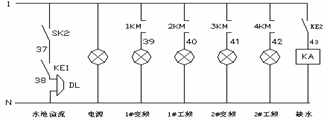 四、系统操作说明 4.1自动控制 1. 设定用户需要的目标压力值 系统送电之后,控制柜面板上的电源指示灯点亮,其下方的温控表将会有显示:PV---.---、SV---.---。其中PV---.---表示水管网中的实测压力值,SV---.---表示用户需要的目标压力值.用户可按动▲、▼键使 SV---.--- 中的数字发生改变,直到显示用户需要的水管网的压力值时按下ENT键,结束目标压力值设定。 2.选择需要开启的泵组 自动/停/手动开关向左45度扳动一次时,泵组处于启动状态,系统将选择1号泵组启动;控制柜面板上的自动/停/手动开关扳到垂直位置时,四台泵组均处于停止状态。当将自动/停/手动开关再次向左45度扳动一次时,系统将选择2号泵启动; 3.变频自动工作开始 当系统检测到某台泵组的启动信号以后,便会使变频器开始升频工作,此时水管网中的压力开始上升,即PV---.---中的显示值开始上升,并不断趋向于用户设定的SV---.---中的目标压力值。当水管网中的压力和用户的设定的目标压力值相吻合(即PV---.---中的显示值和SV---.---中的显示值相吻合)时,变频器的输出频率便会稳定[3>。 4.2自动控制中的部分功能 1.自动切换至工频 2.故障泵组自动退出运行 3.定期倒换工作泵组 五、恒压供水控制系统的优点 1.采用变频恒压供水,消除了主管网压力波动,保证了供水质量,而且节能效果明显,并延长了主管网及其阀门的使用寿命。 2.用稳压减压阀经济地解决了不同用水压力的问题。 3.拓宽运用变频恒压控制原理,较好地解决了加压泵房与抽水泵房的远程通讯总是并达到异地连锁控制的目的。 |