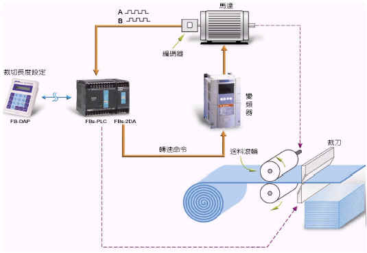 | 藉由FB-DAP设定裁切长度,编码器若由送料滚输回授,可获得更精准的长度. |